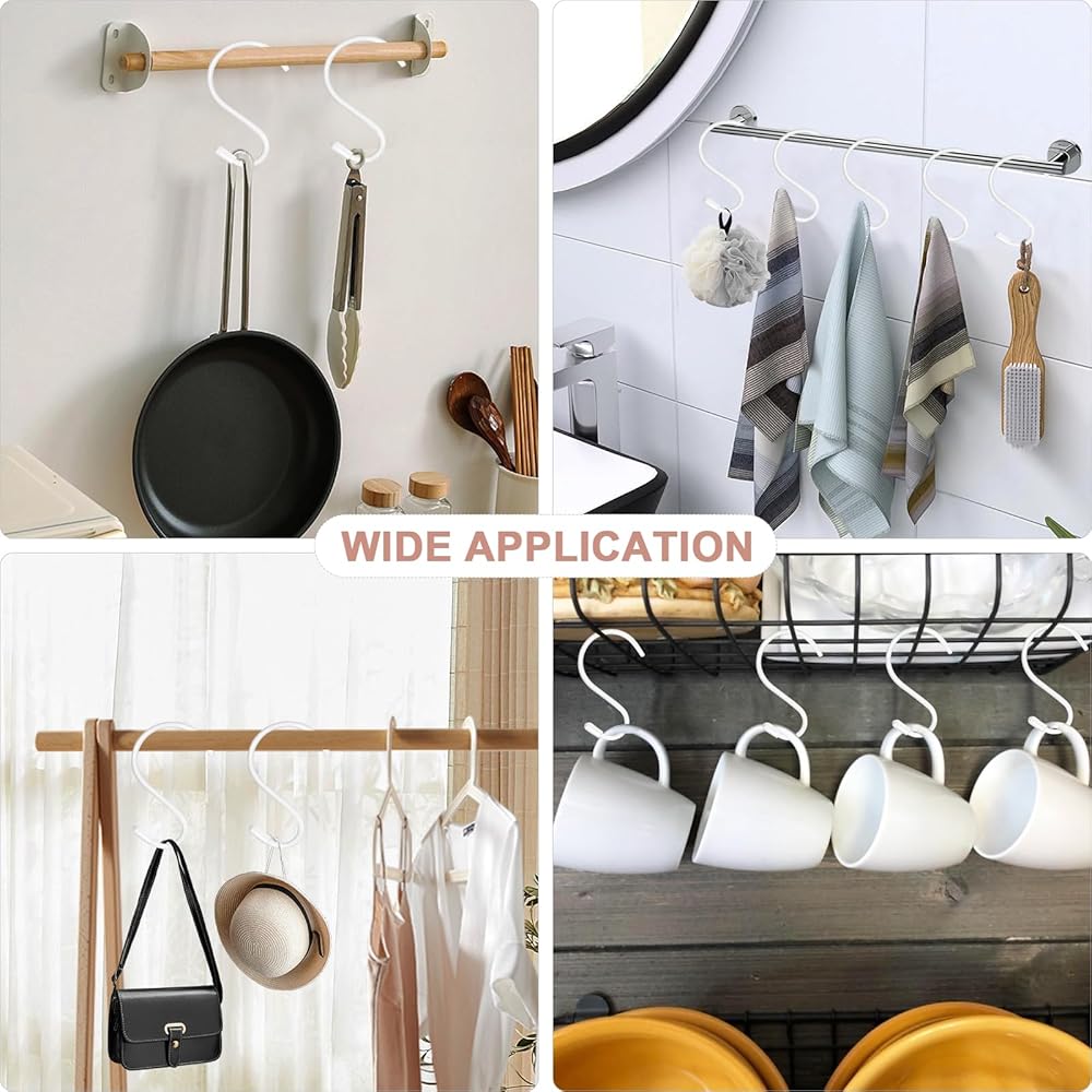 Easy to Use: S shaped hanging hooks are easy to hang on existing objects, not need tools, nails, screws, or adhesives. A great solution to save space in your home, kitchen, bathroom, garden.