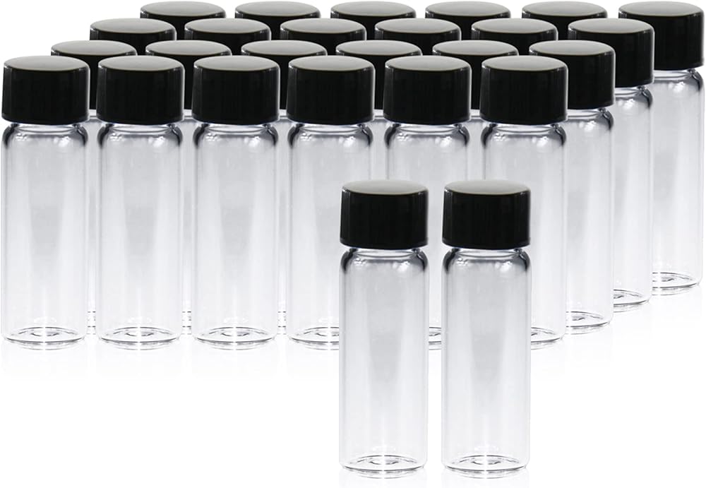 PEKYBIO 20 PCS 4 ML (1 dram) Clear Small Liquid Sample Glass Vials with Screw Caps, 15 mm Diameter x 45 mm Length Leak-Proof Vial, 13-425 Black Screw Cap with PE Liners