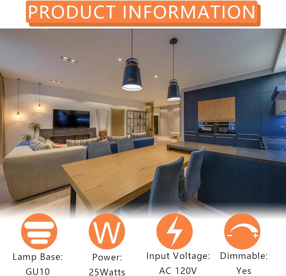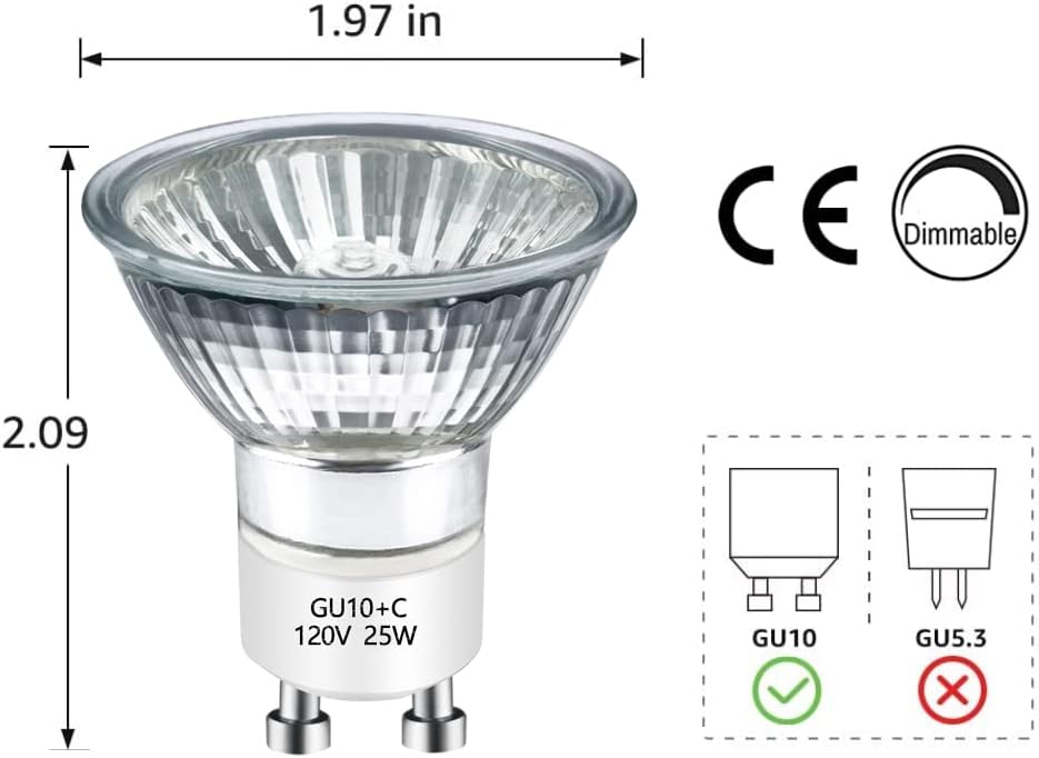 GU10 Dimmable : Control the brightness of your track lights and spotlights with the ability to reduce from 100-10% lighting output. Set your gu10 halogen 25w bulbs according to your mood and take delight in a pleasant atmosphere every time