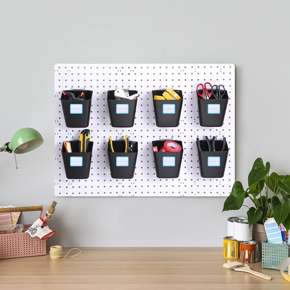 • Size Information: each pegboard wall organizer is approx. 12 x 10 x 13 cm/ 4.7 x 4 x 5 inch, the silver hook is approx. 2 inches in width, and each label is approx. 3.9 x 5 cm/ 1.5 x 2 inch; It has suitable size and can accommodate your most items, such as hardware, screwdriver, pen, clip, tape measure, and so on