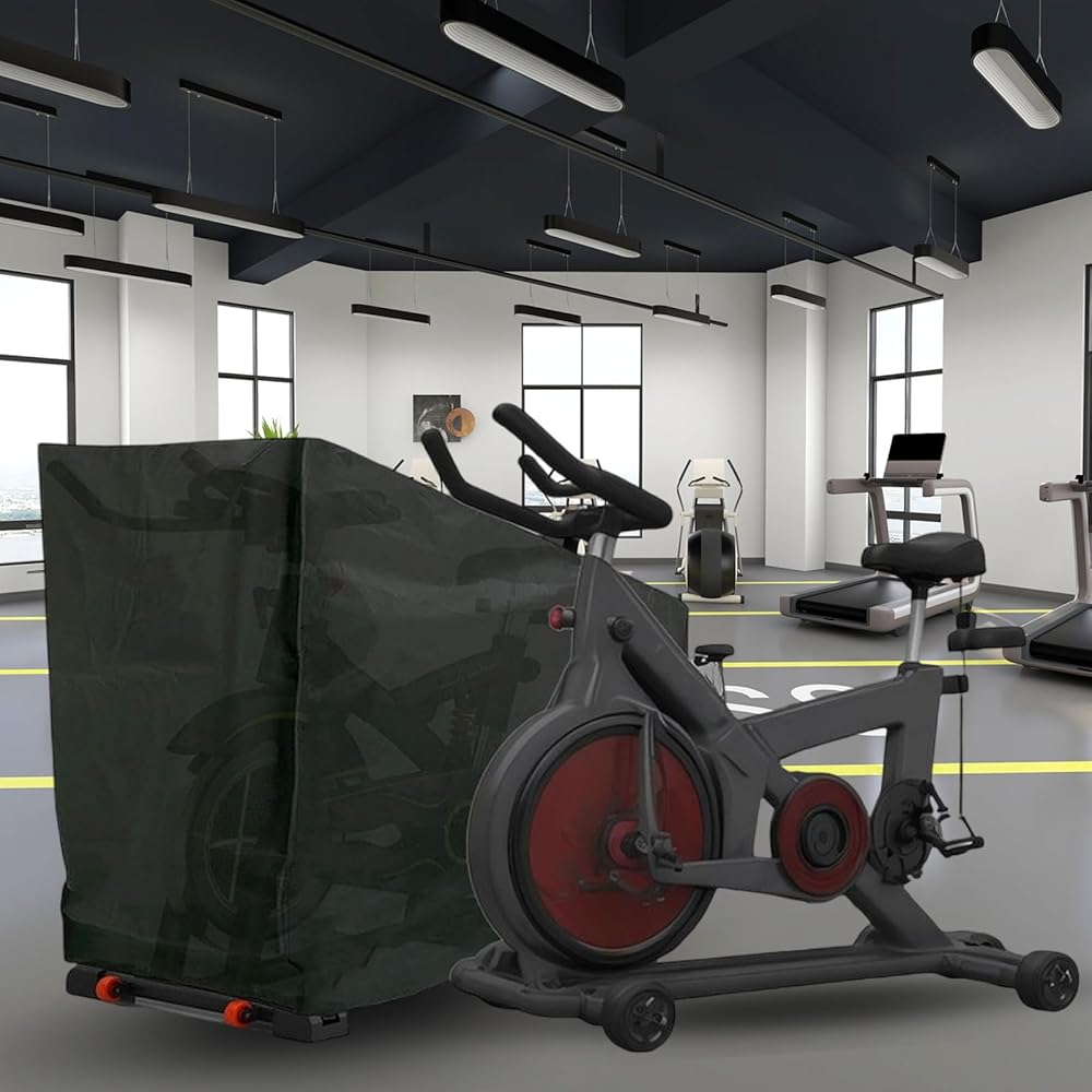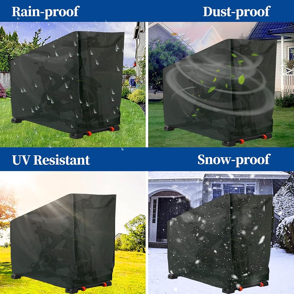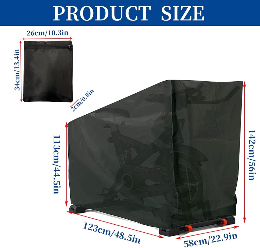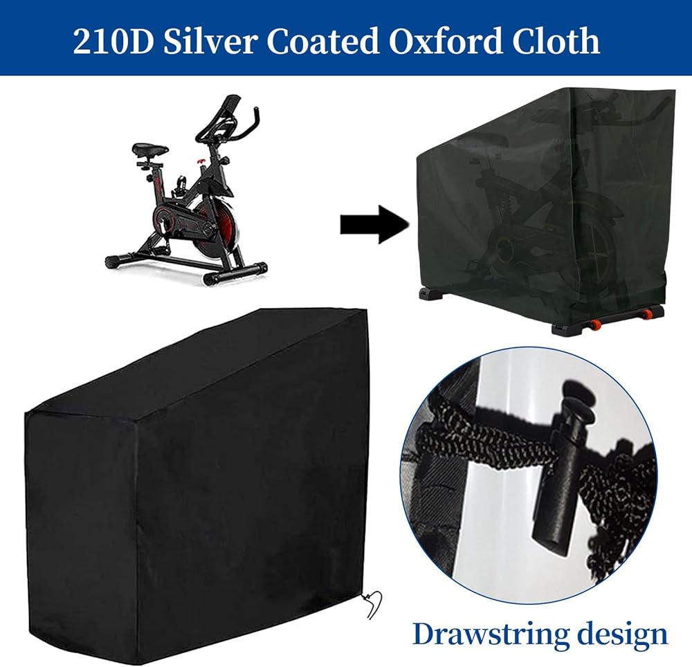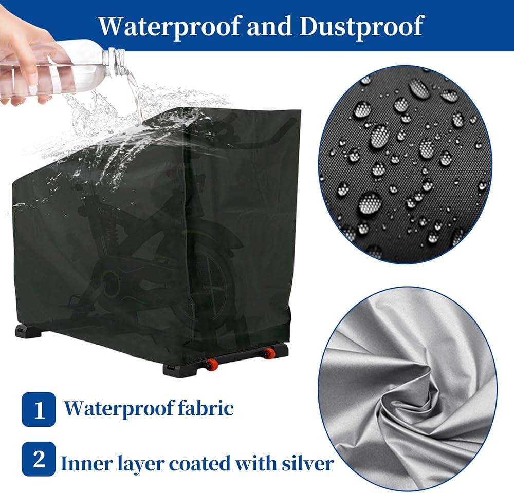 DURABLE MATERIAL: The stationary bicycle cover is made of 210D Oxford fabric with waterproof coating, which is able to resist dust, sun, pet hair, water stains, etc. Keeps your exercise equipment dry and clean!