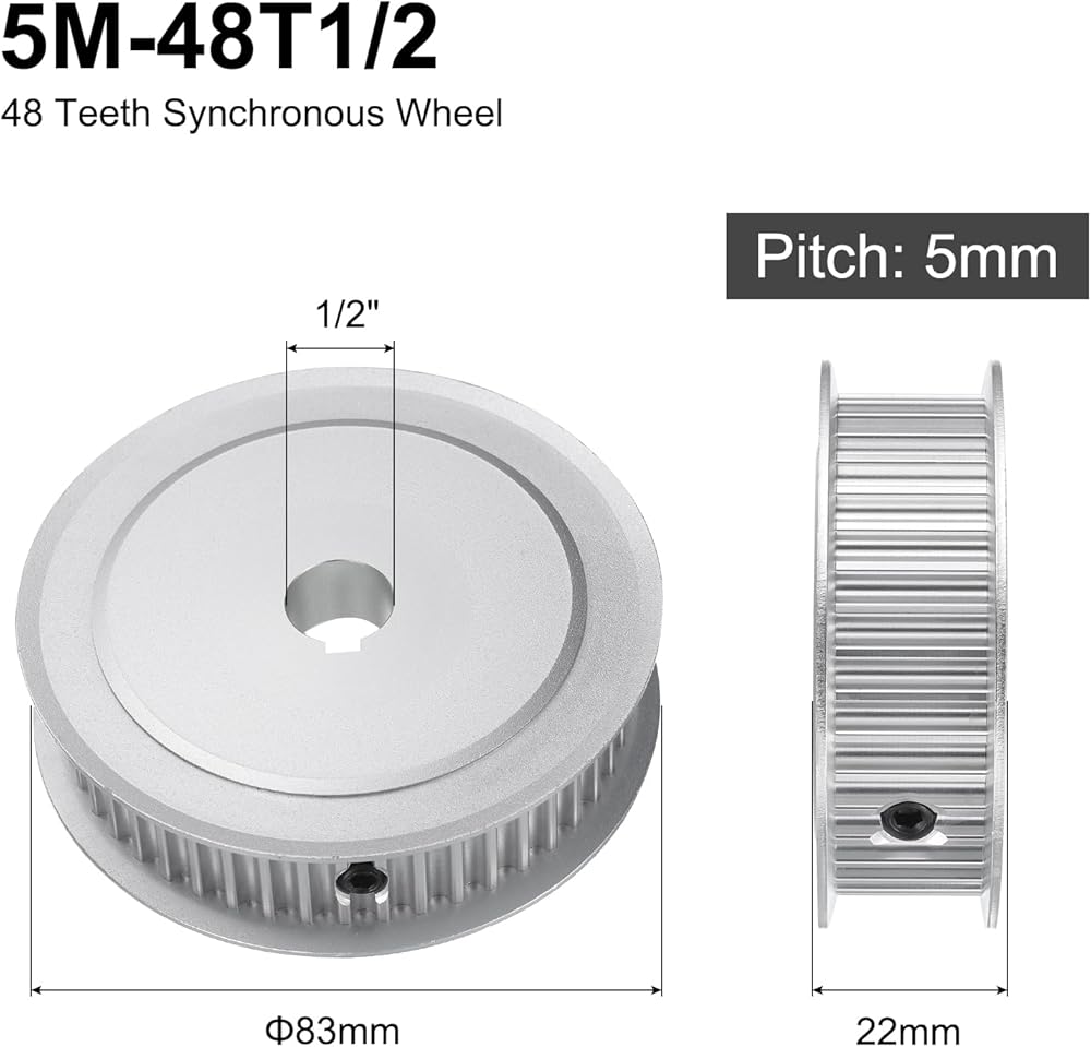 Size: 48 teeth synchronous wheel 1/2" bore, outer diameter 83mm, thickness 22mm, fit for 15mm width synchronous belt.