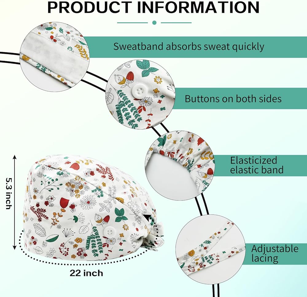 【BREATHABLE ANTI-SWEAT】: Scrub hats women has a built-in sweatband to absorb sweat quickly and keep you fresh and dry.