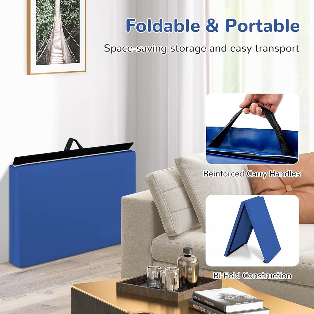 【Foldable Design】: Our gymnastics mat features humanized design with reinforced carrying handle and foldable construction.It is avaliable to be folded into quarters and the hand carry belt is designed to make it easy and convenient for you to carry.