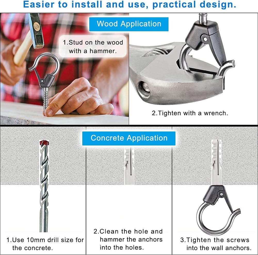 - 【Package Combo】: You will get 8 pack screw hook. Special expansion anchors are included for concrete ceiling.