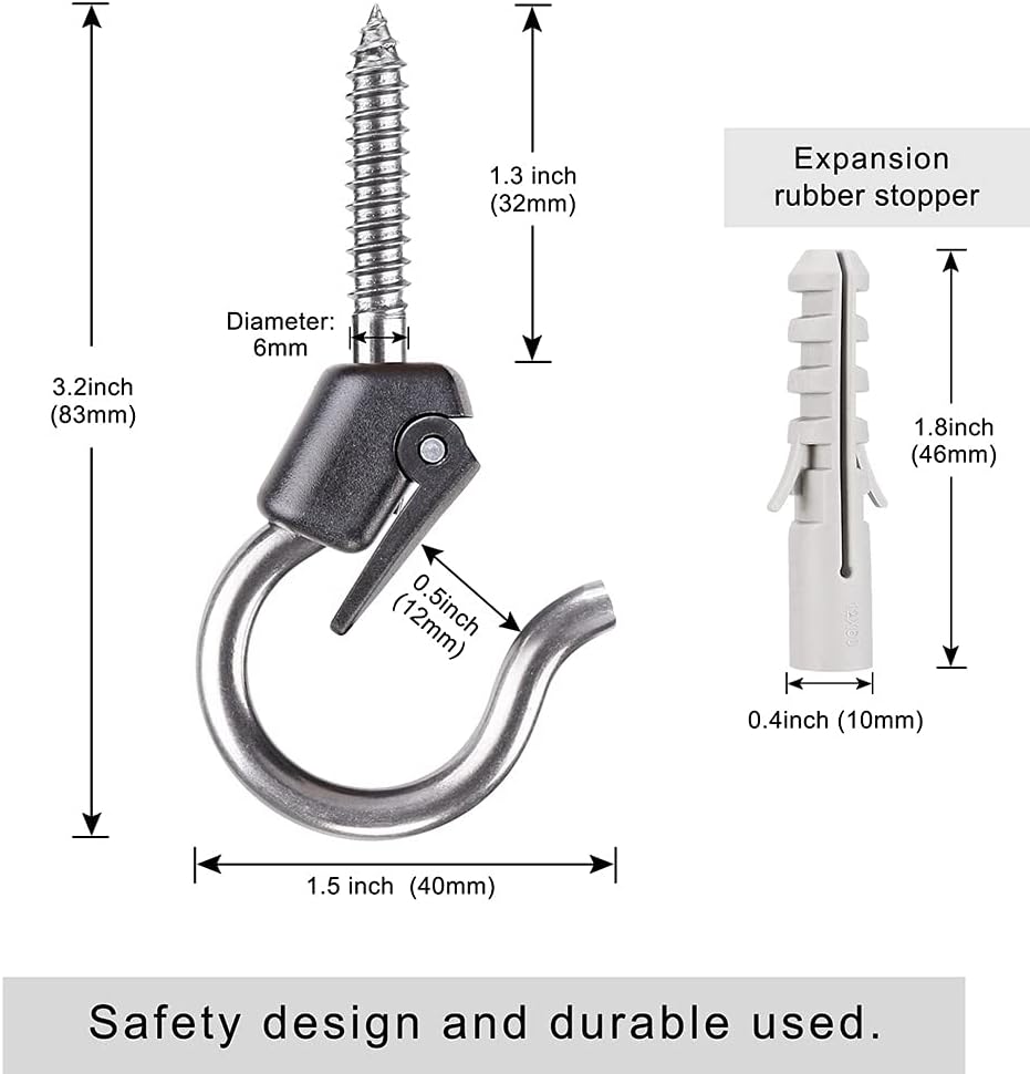 - 【High-quality】: This screw is made rust-proof 304 stainless steel and hook part is made of higly durable plastic.