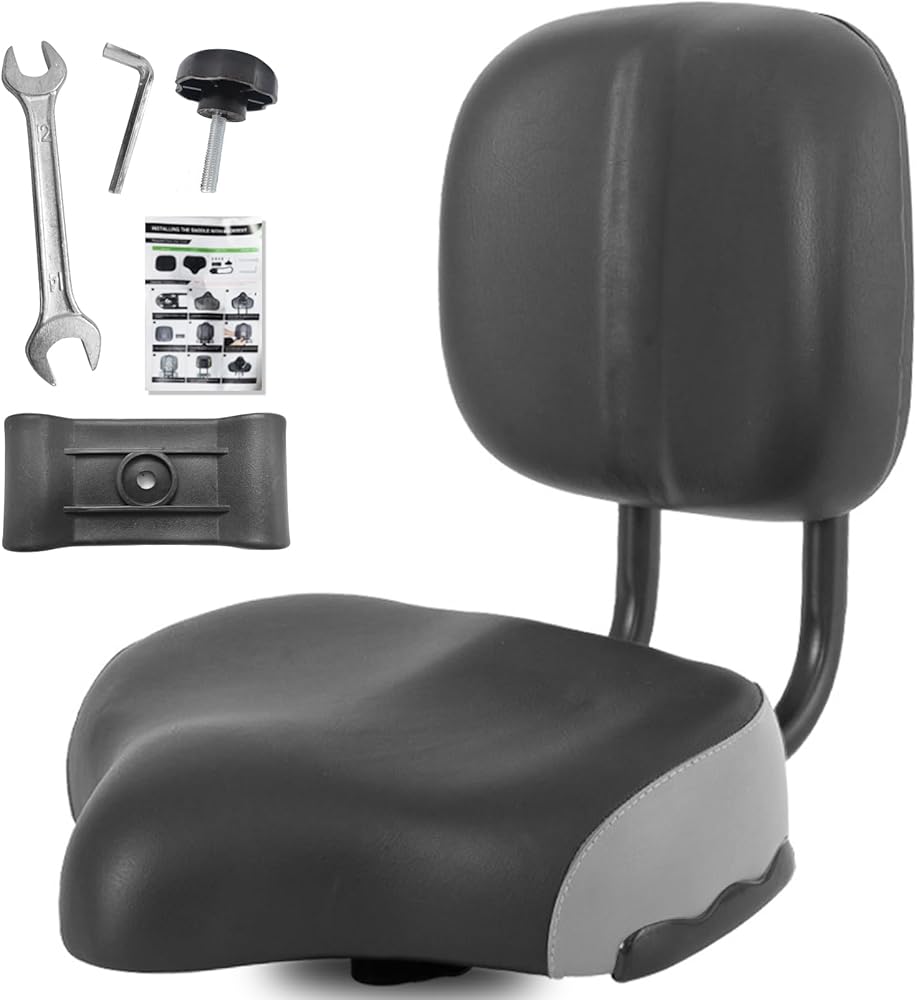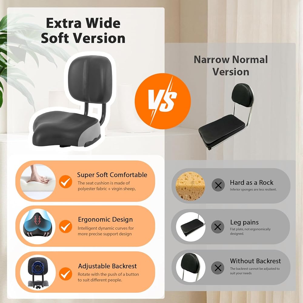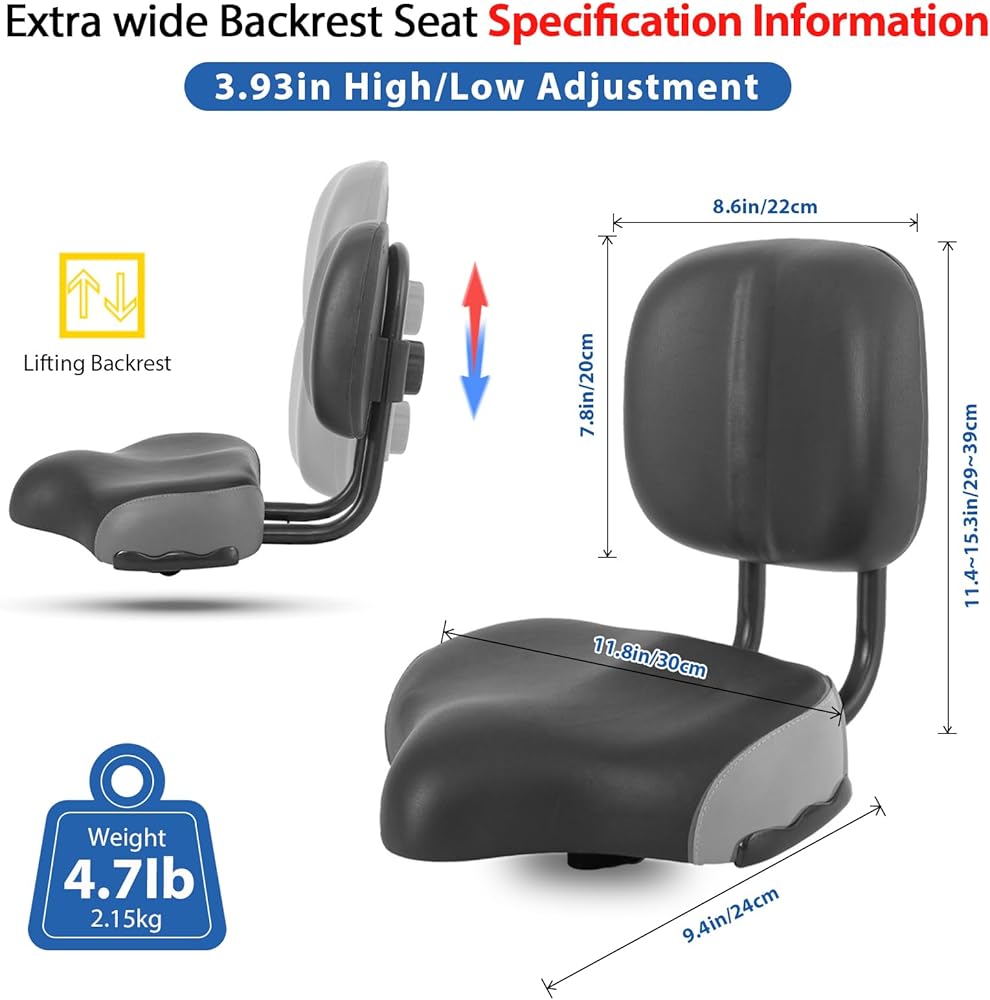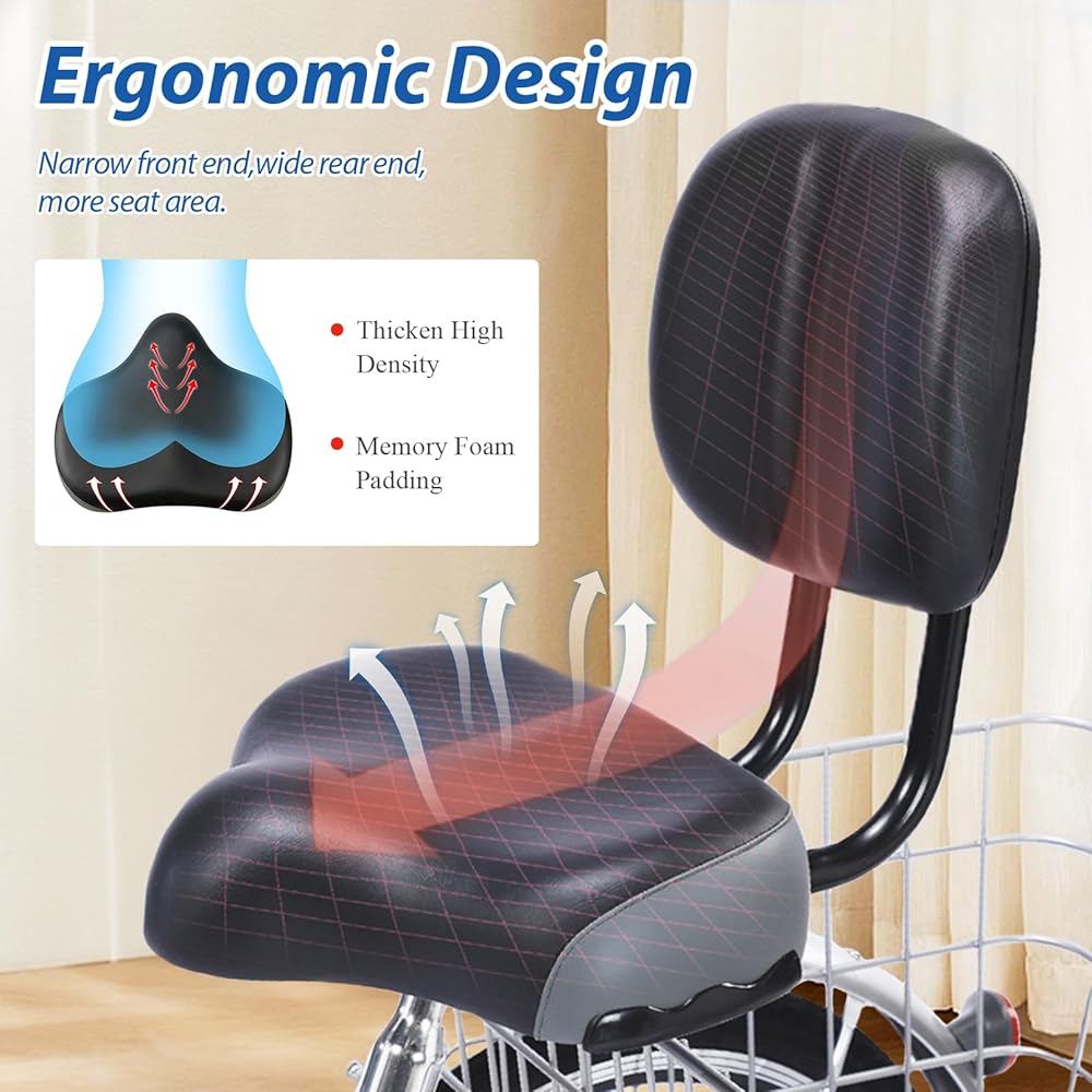 Bike Seat with Backrest, Oversized Comfortable Ergonomic Design Bicycle Saddle for Men and Women Adjustable Height Bike Saddle for Tricycle City Bike Commuter Bike Electric Bike