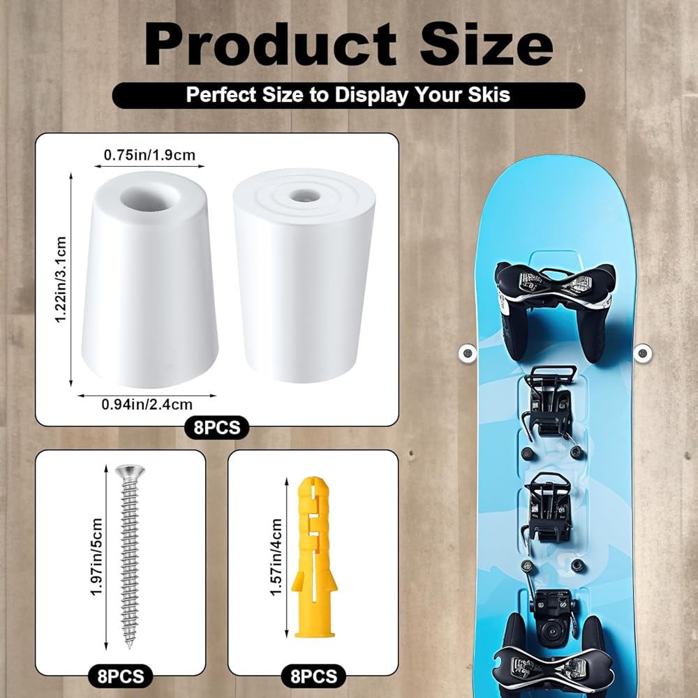 Product Size: vertical ski hangers 0.94x0.75x1.22in/2.4x1.9x3.1cm, screw 1.97in/5cm, expansion anchor 1.57in/4cm