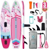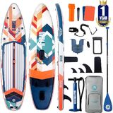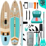 【Versatility for Various Scenarios】-The paddleboards are equipped with two multifunctional mounts, for attaching accessories like camera mounts, cup holders, and fishing rod holders. The nose and tail of the board feature bungee cords, offering customization options to suit different preferences. This inflatable sup can be used in various water conditions, such as the ocean, lake, and river, and is versatile enough for yoga, surfing, exploring, traveling, and fishing.