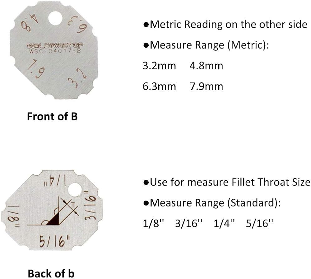 Other Features of Key Chain and Pocket Size---- With a key chain, and every piece of weld fillet gage can be disassembled for measuring; Pocket size, easy to put into jacket or trouser pocket