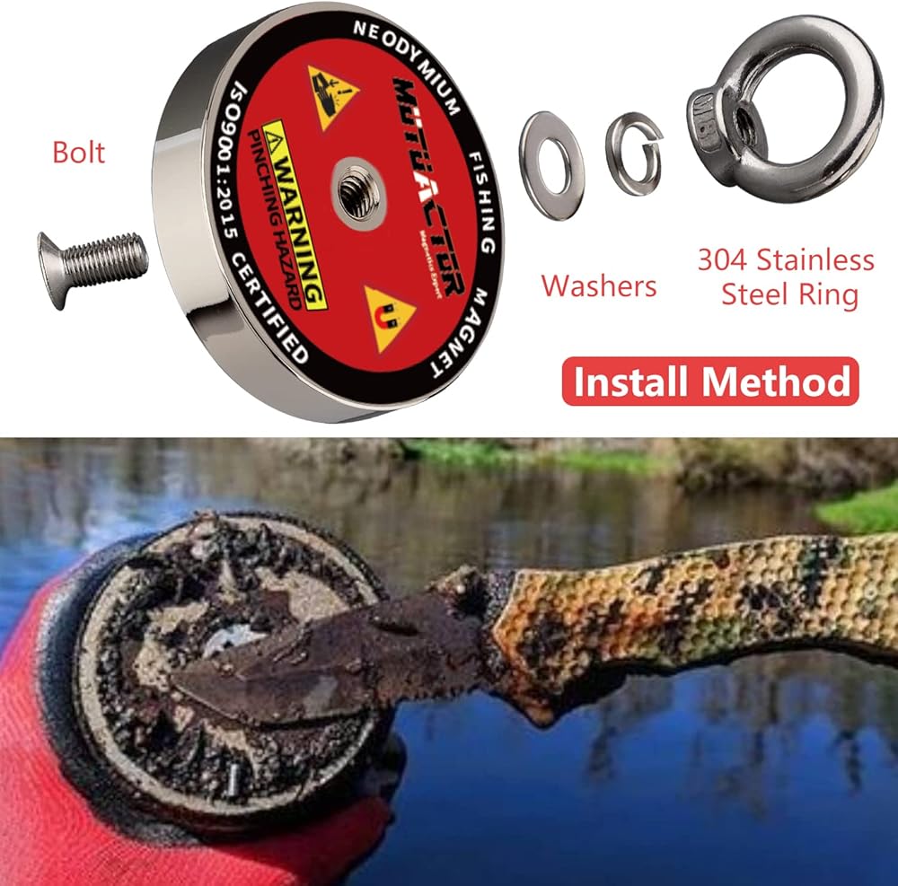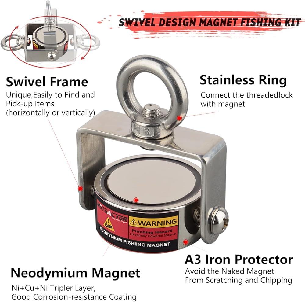 [Stronger Fishing Magnet Kit] Benefit from a 360°rotatable design, which keeps the fishing magnet always vertically towards the objector under the water, and also has a strong pulling force for fishing, lifting, and hanging