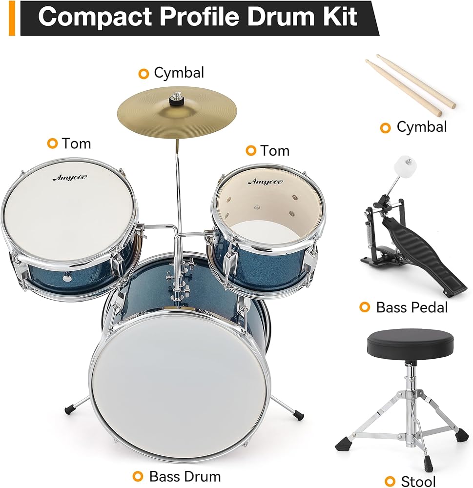 Bright and Easy to Maintain: With a stunning electroplate finish, this junior drum set is easy to clean and maintain while looking great; its vibrant design appeals to children, encouraging pride in their instruments and enhancing their overall experience
