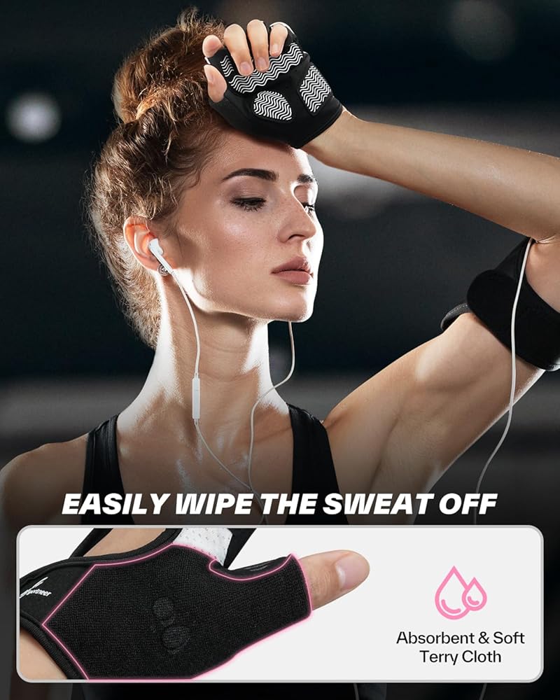 Sportneer Workout Gloves for Men & Women, Full Palm Protection Breathable Exercise Gloves w/Curved Open Back, Lightweight Fitness Gloves for Pull Up, Dumbbells, Cycling, Rowing