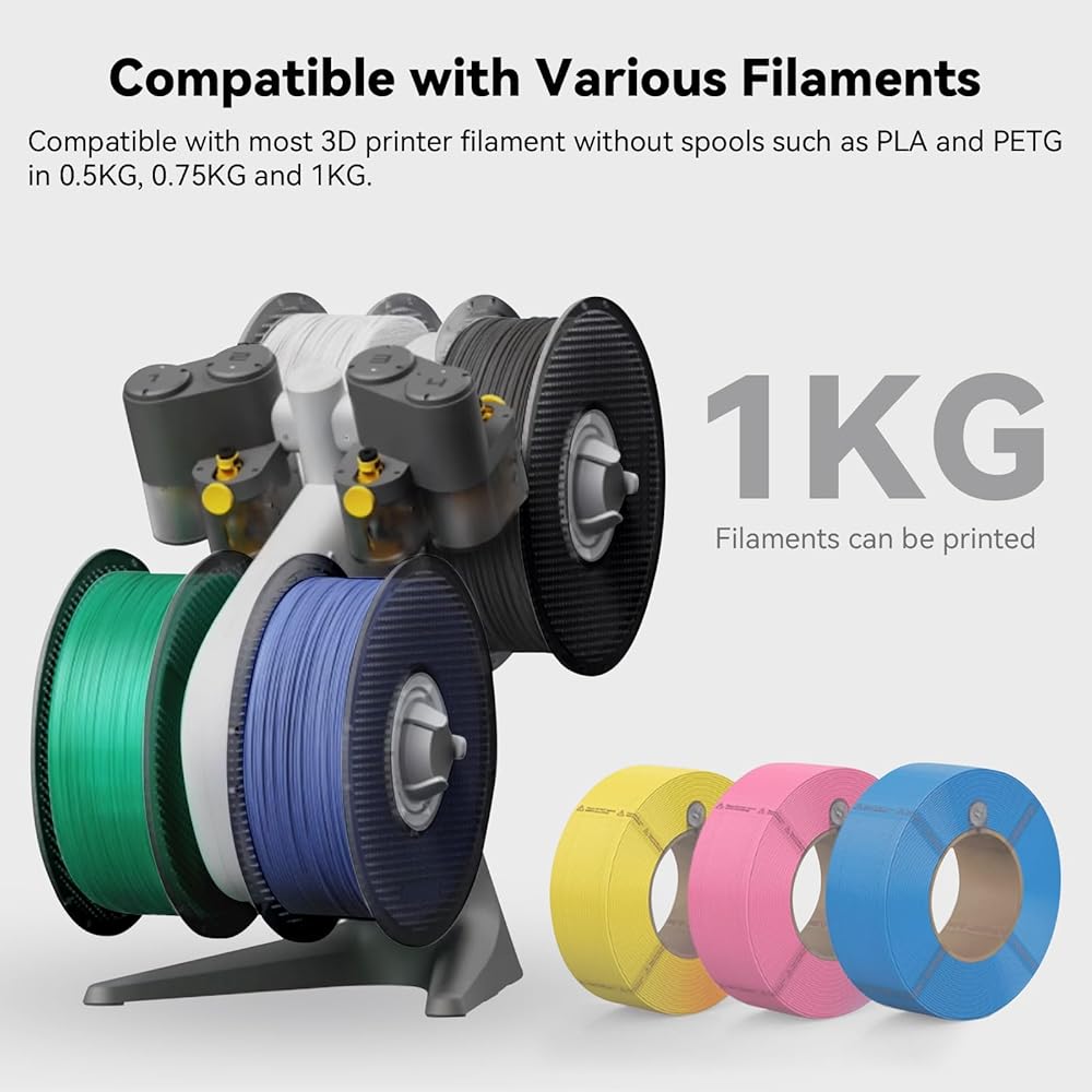 【Compatibility】Reusable Filament Reel Holder fits 0.5KG,0.75KG and 1KG PLA, PETG and other 3D printer spoolless filament,Compatible with Bambulab A1/A1 mini,providing more choices for you