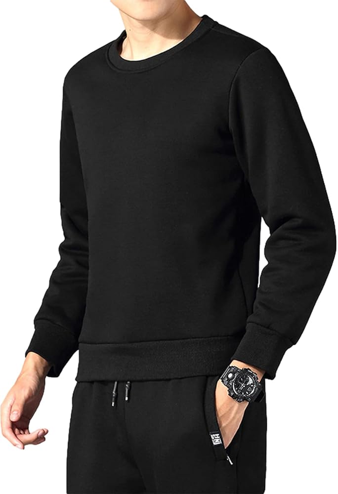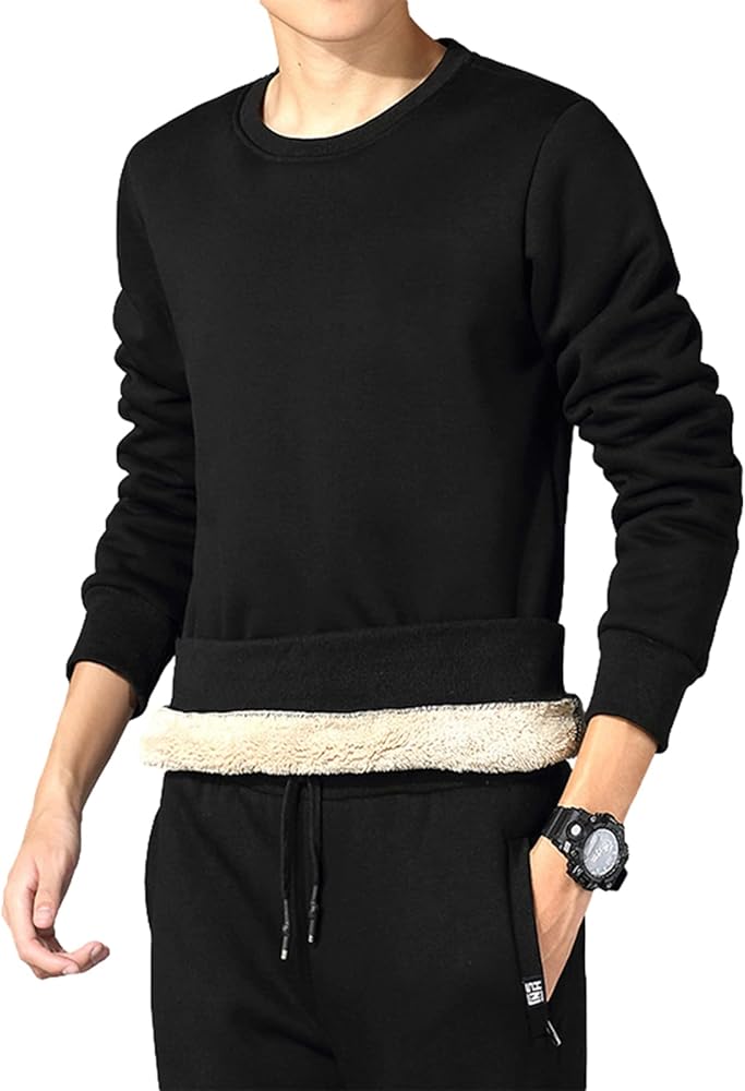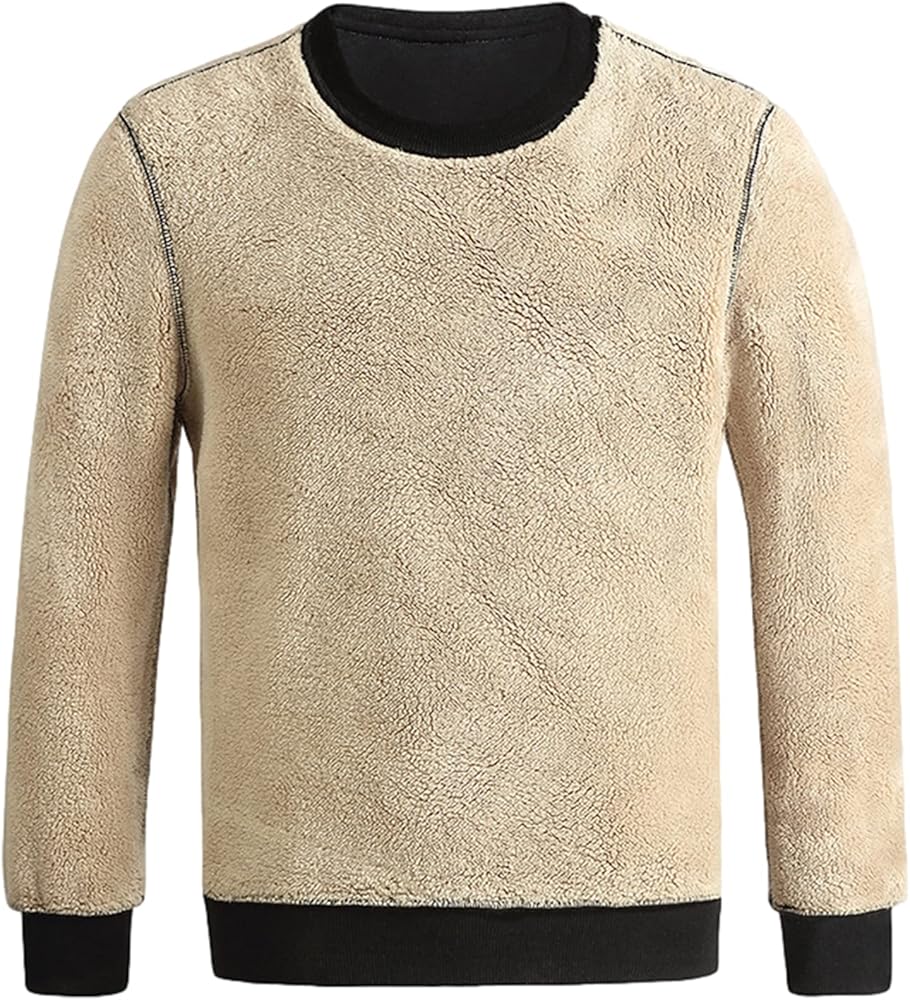 【Feature】- ★ Warm: Fully lined thick sherpa fleece lining; Ribbed neck, cuff and hemline. ★ Comfy: Made of cotton-blend material. Anti-pil, soft & breathable, shape retention & anti-wrinkle. ★ Simple Design: Solid color, crewneck, long sleeve with pull on closure.
