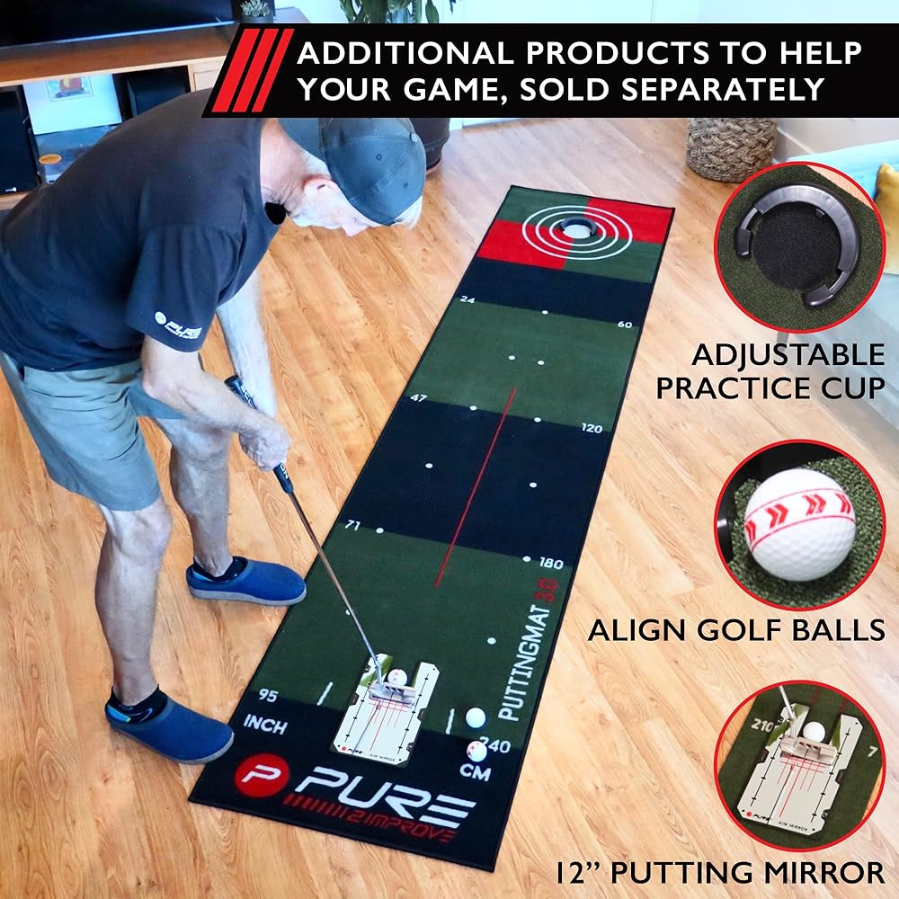 PUTTS ROLL TRUE. Pure2Improve's proprietary putting green surface delivers a true roll at a 9 STIMP for effective and consistent putting practice translating to lower scores on the course