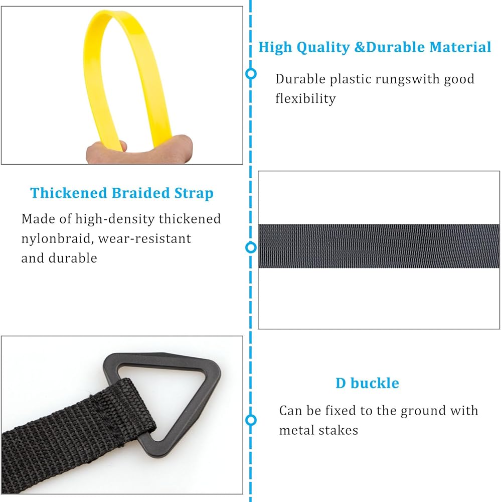 The 20-foot agility ladder with 4 stakes allows you to practice quick footwork and improve coordination.