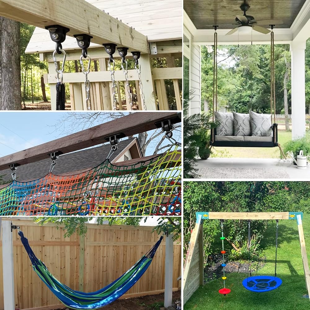 Upgraded Hangers: Coated with black anti-rust, BETOOLL swing hangers are suitable for outdoor use in inclement weather. Industrial and custom plastic washers are specially designed to prevent metal rubs, providing a quiet and smooth ride
