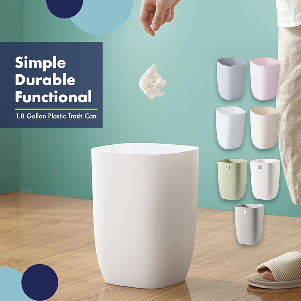 COMPACT SIZE: This simple trash can provides 1.8 gallons (7 Liter) capacity, a compact size for small apartments and condos.