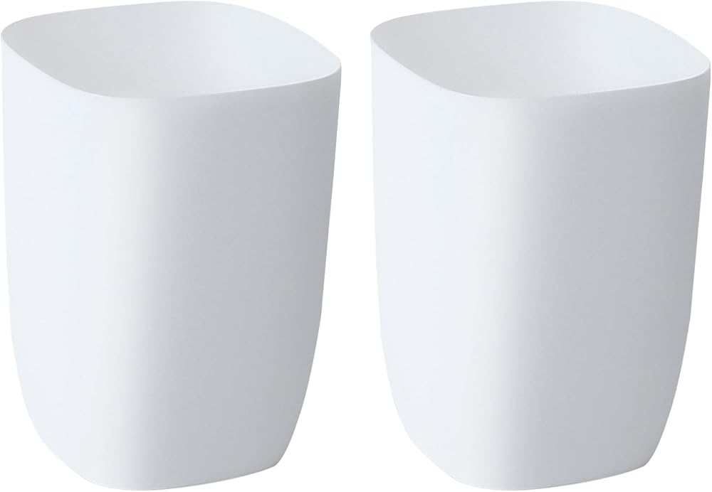 2-Pack Bathroom Trash Cans - Compact 1.8Gal Small White Wastebaskets for Bathroom, Kitchen, Bedroom & Office | Space-Saving Plastic Garbage Bin with Stylish Minimalist Design