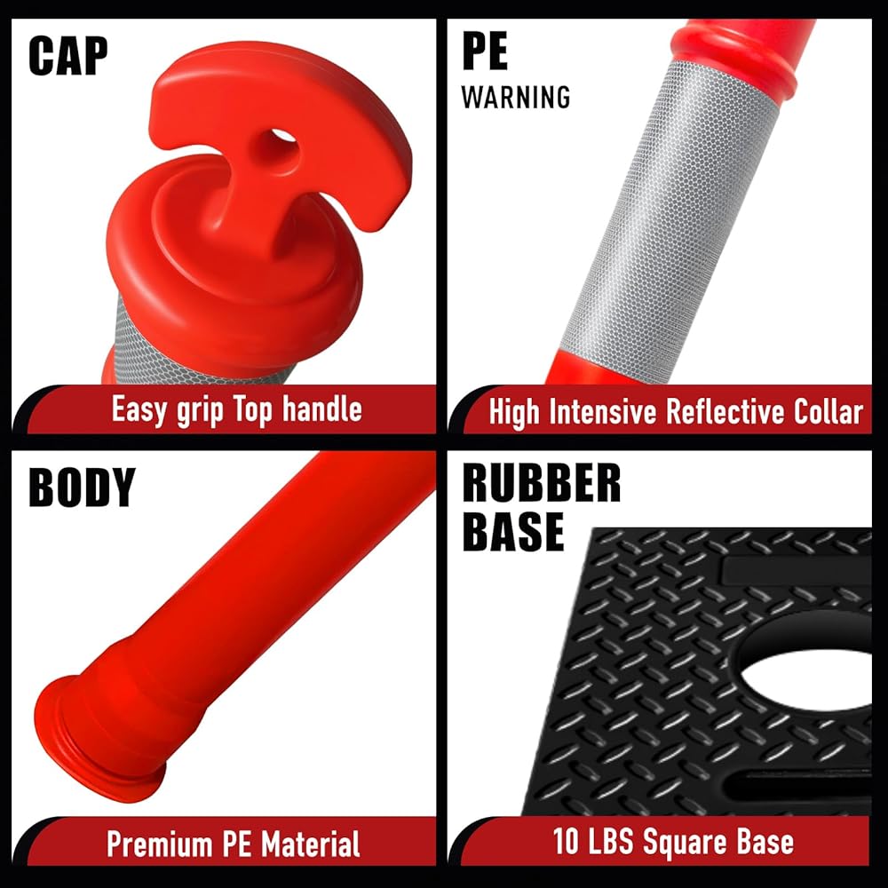 Wide Application: The traffic delineator posts are ideal for parking lot, construction sites, driveway barrier and various public areas, providing traffic control, traffic delineation, caution zones, and on parking blocks.