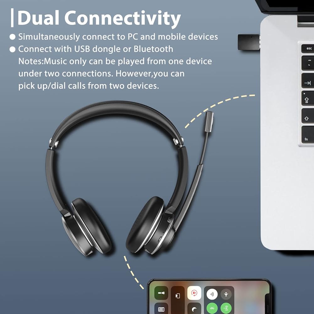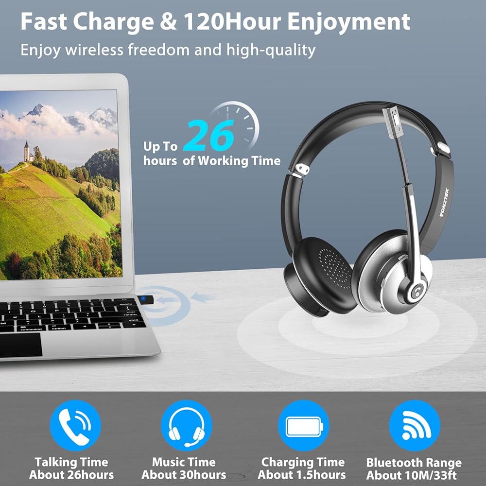 Vonztek Wireless Headset with Microphone for PC,Bluetooth Headset with Mic Mute & Noise Canceling, Wireless Headphones with USB Dongle for Work from Home/Laptop/Office/Cell Phone/Zoom/Ms Teams/Skype