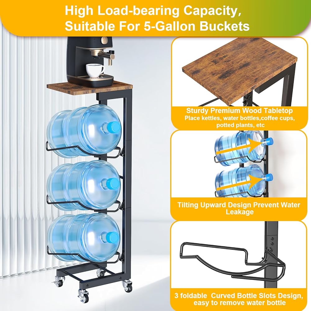 Sturdy Water Bottle Holder:This 5 gallon water bottle holder is constructed with strong particleboard and premium durable steel with black paint, which is rust-proof, durable, and corrosion-resistant,Stably supports 3 bottles of 5 gallon water bottles to ensure you have an adequate supply of drinking water.