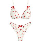 ❤Sexy Triangle Bikini Top: The bikini features a classic adjustable shoulder strap, fruit cherry print, providing a minimalist and timeless look. The triangle shape flatters the bust and allows for adjustable coverage and fit