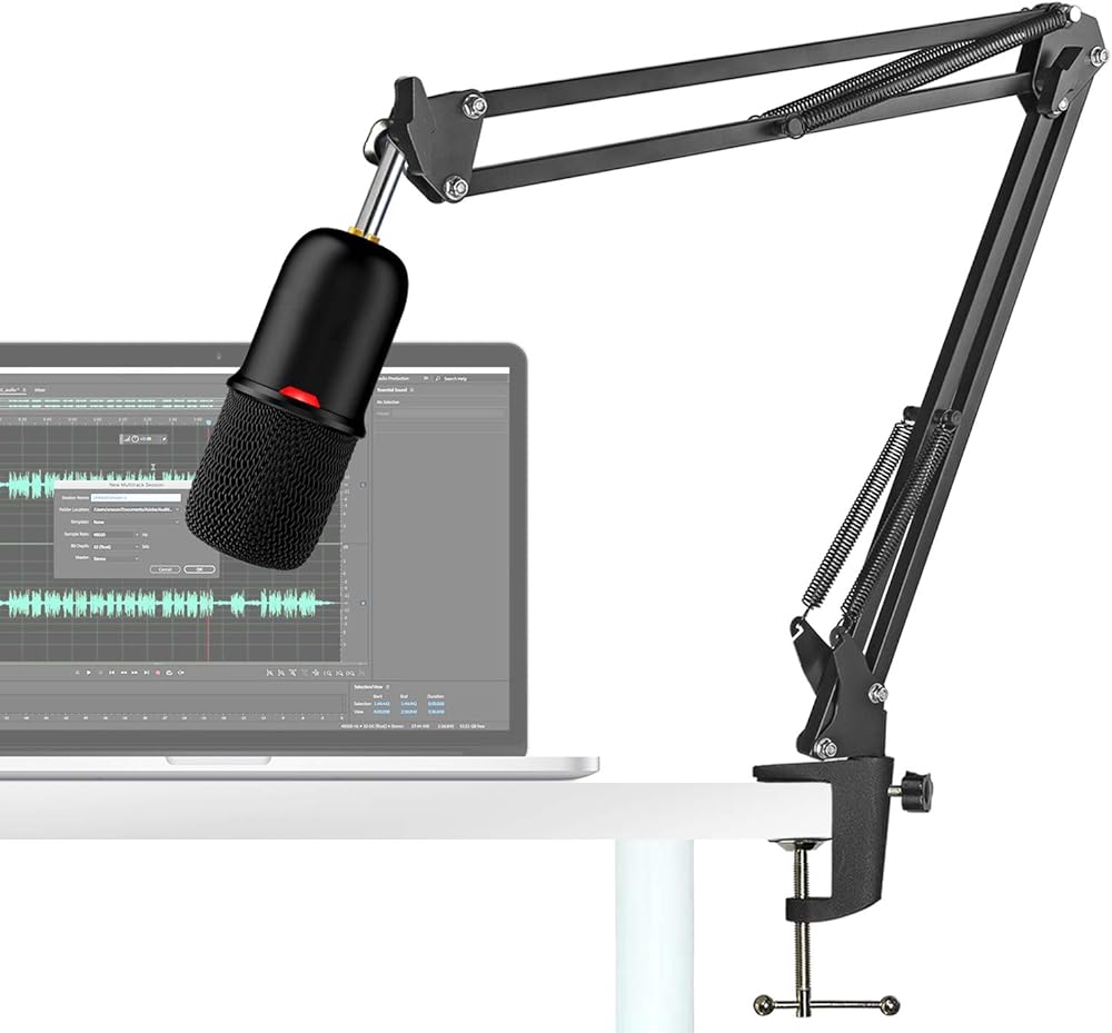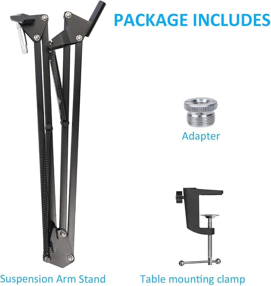 Mic Stand - Dual suspension springs of each boom arm protect microphone from shaking, suddenly dropping.