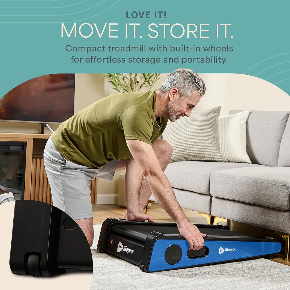 EASY TRAVEL & STORAGE - Thanks to its wheels and compact dimensions, you can easily take the portable walking pad under desk treadmill wherever you go, or tuck it out of the way when not in use!