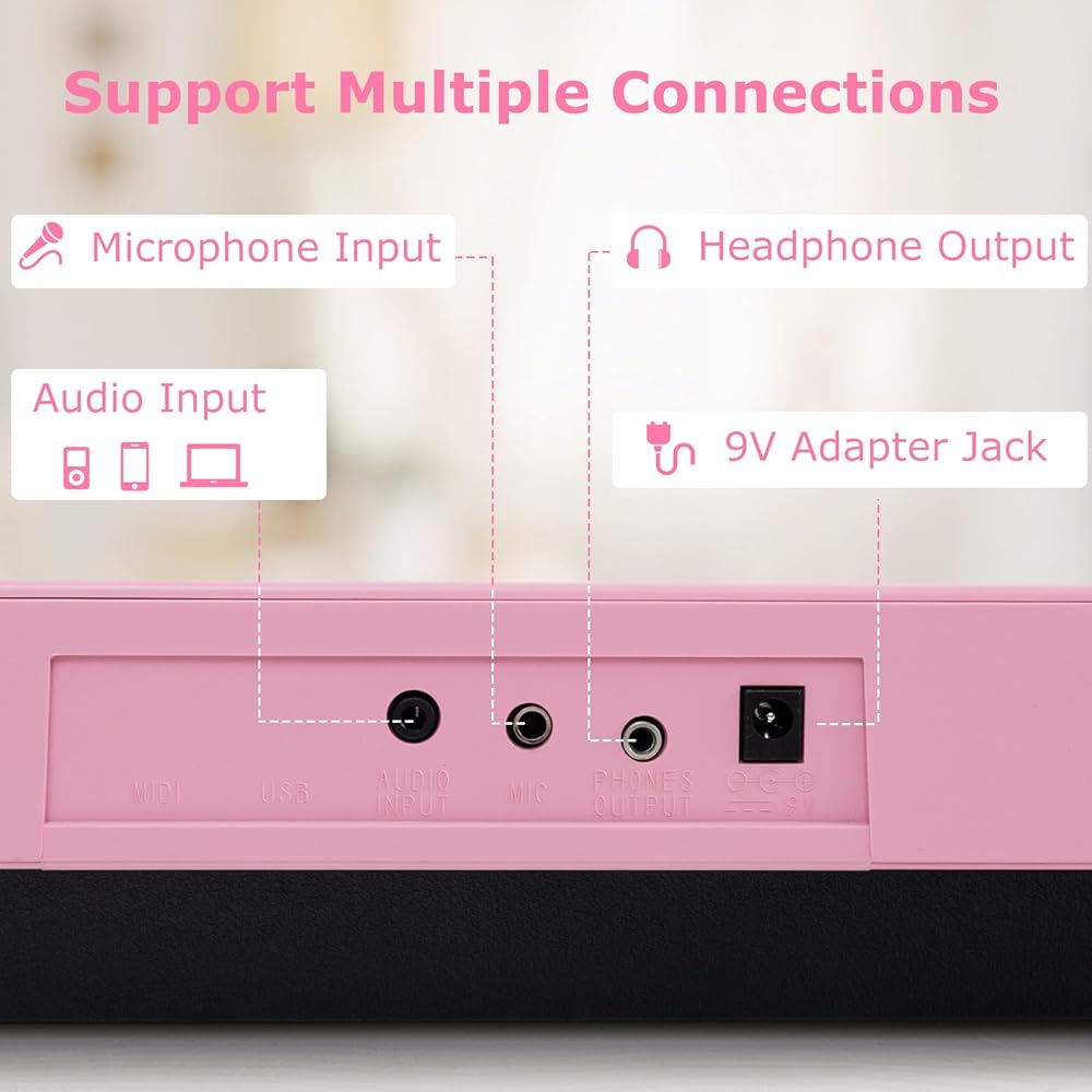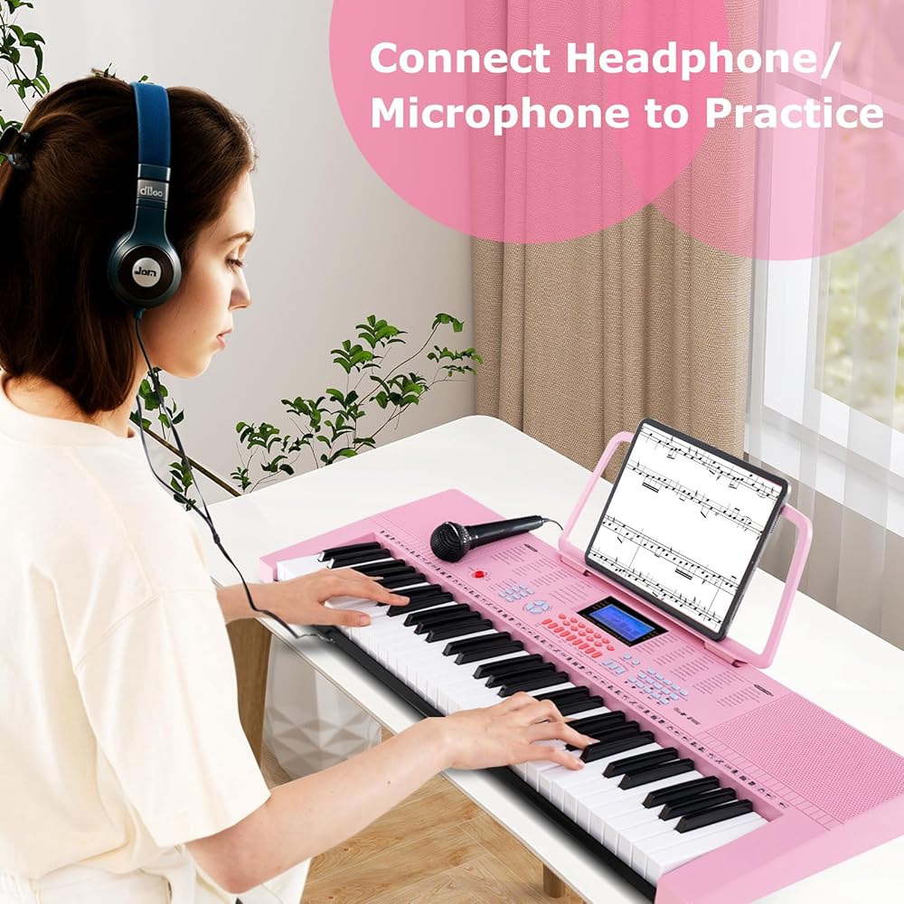 Advanced Connectivity & Accessories: This 61-key electronic keyboard features an audio input jack for connecting external devices, such as mobile phones, MP3, computers, etc. The included headphone and microphone allow you to sing along or practice silently. Moreover, a music stand is provided for added convenience.