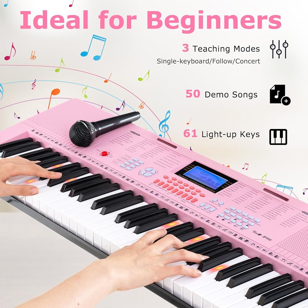 Interactive Learning Tool: The inclusion of 3 teaching modes (single-keyboard/follow/concert) and 61 light-up keys provides a fun and interactive way for beginners to learn and practice. In addition, 2 high-quality speakers can provide great sound quality and enhance the learning experience.