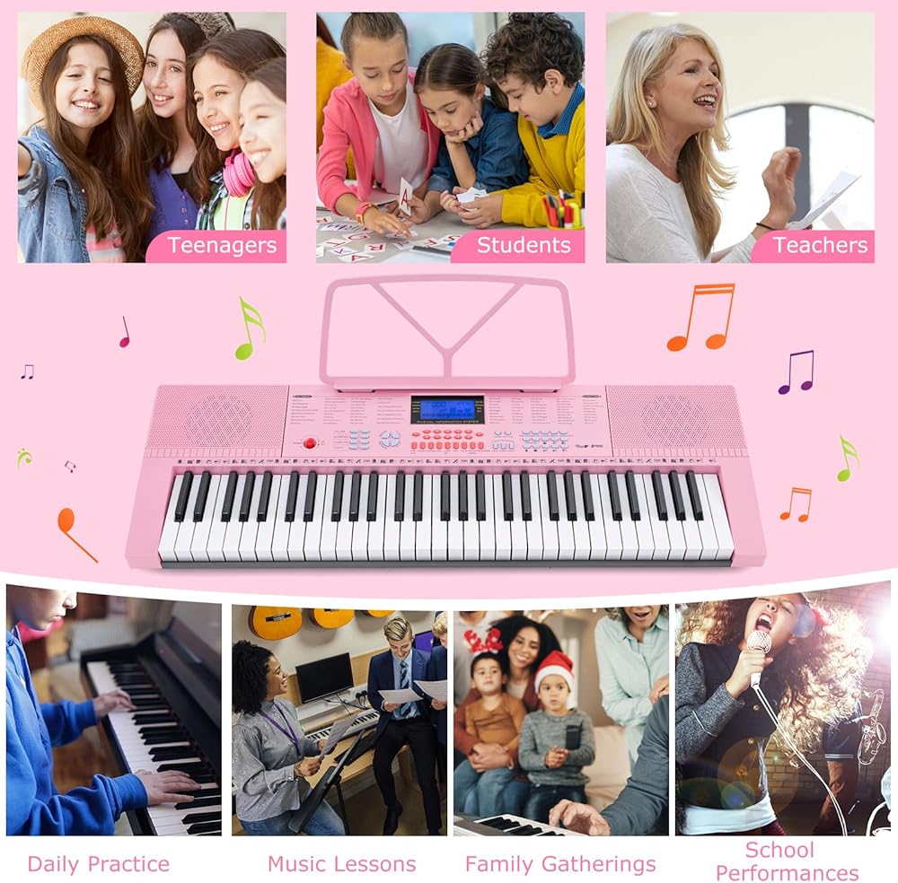 Wide Range of Application: This 61-key multifunctional electronic keyboard is an ideal gift for piano beginners, teenagers, students, teachers and more. What's more, it is perfect for daily practice, music lessons, family gatherings, school performances, etc.