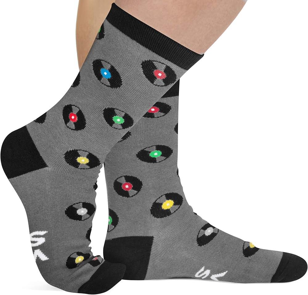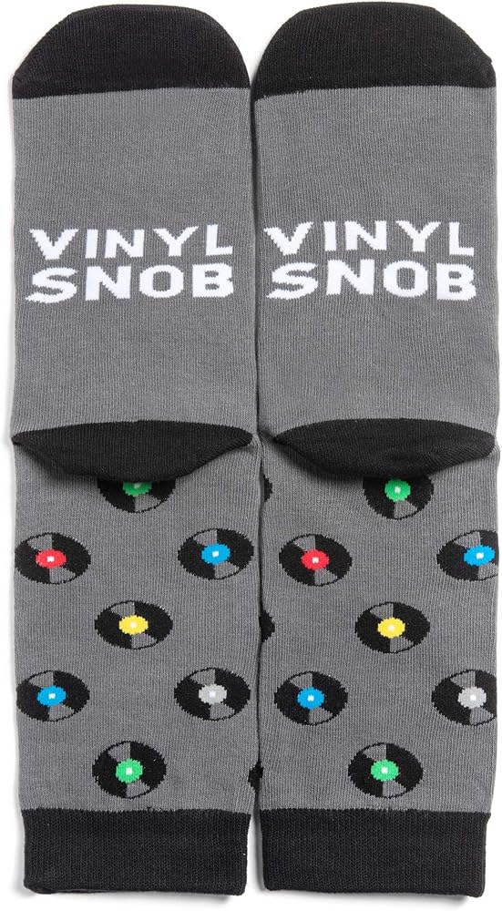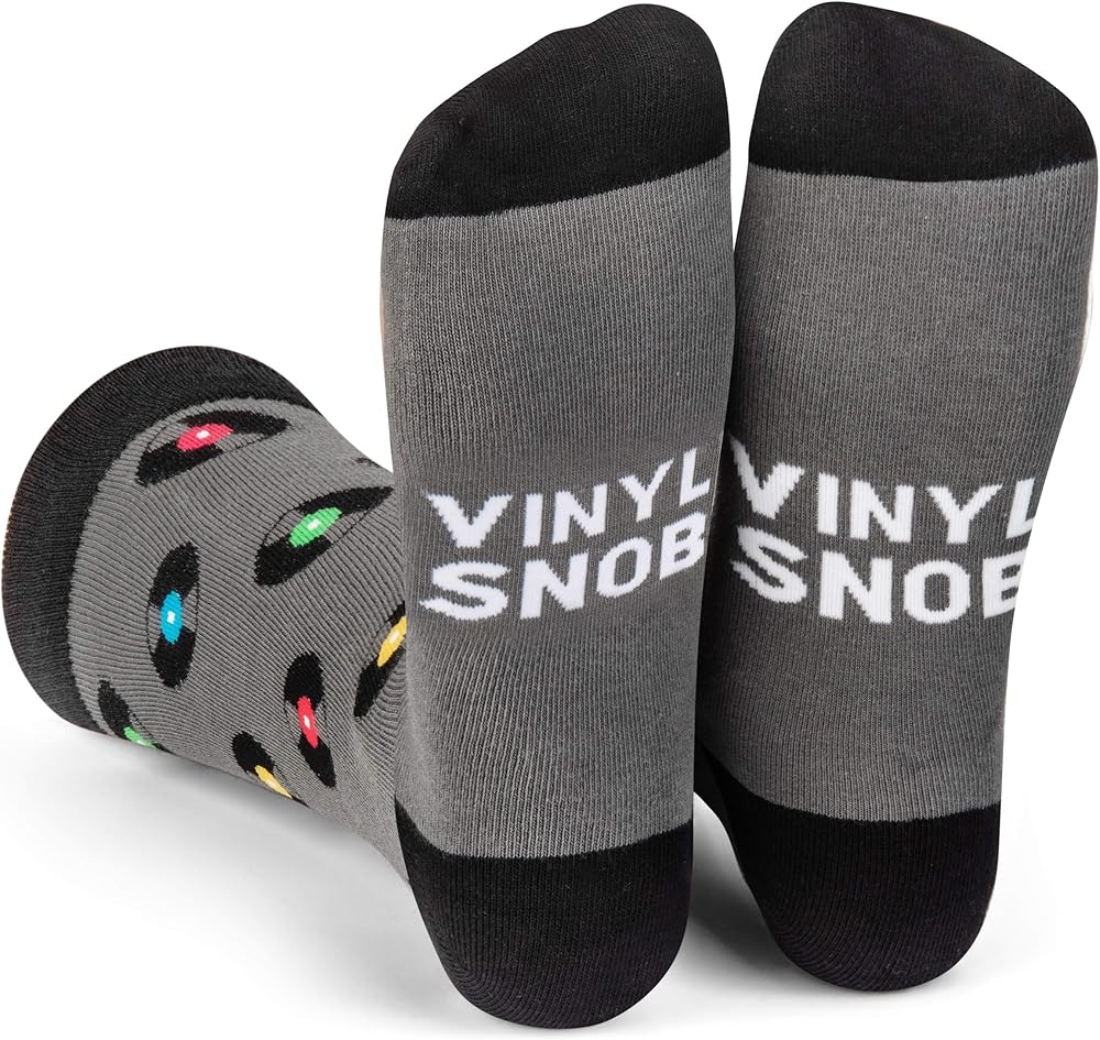 Vinyl Snob Crew Socks - Funny Novelty Gift for Record Nerds and Music Lovers - for Men and Women