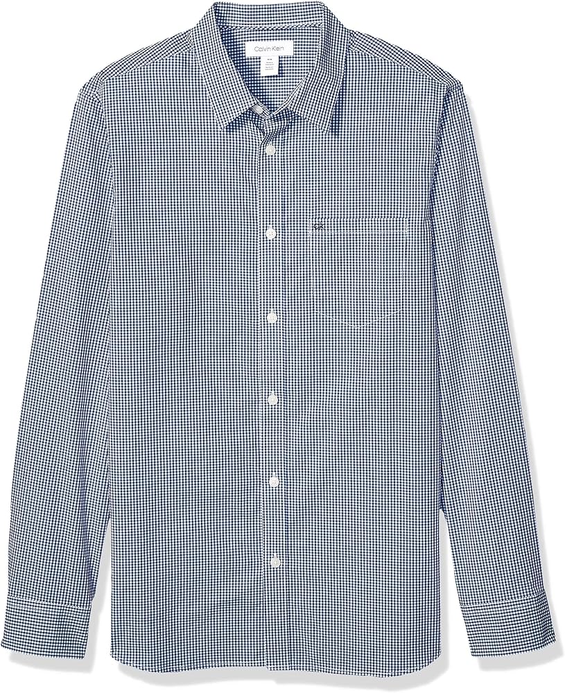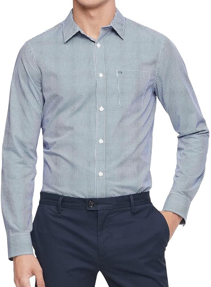 Create an effortlessly classic look with a slim fitting men's long sleeve button-up shirt from Calvin Klein. A slim fit creates a tailored look that forms to your torso while barrel cuffs give off a more casual style.