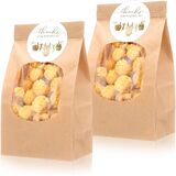 The individual popcorn bags are made of reliable, sturdy paper that ensures durability while adding a chic, rustic touch. These brown bags are both functional and aesthetically pleasing, providing the right feel for any celebration
