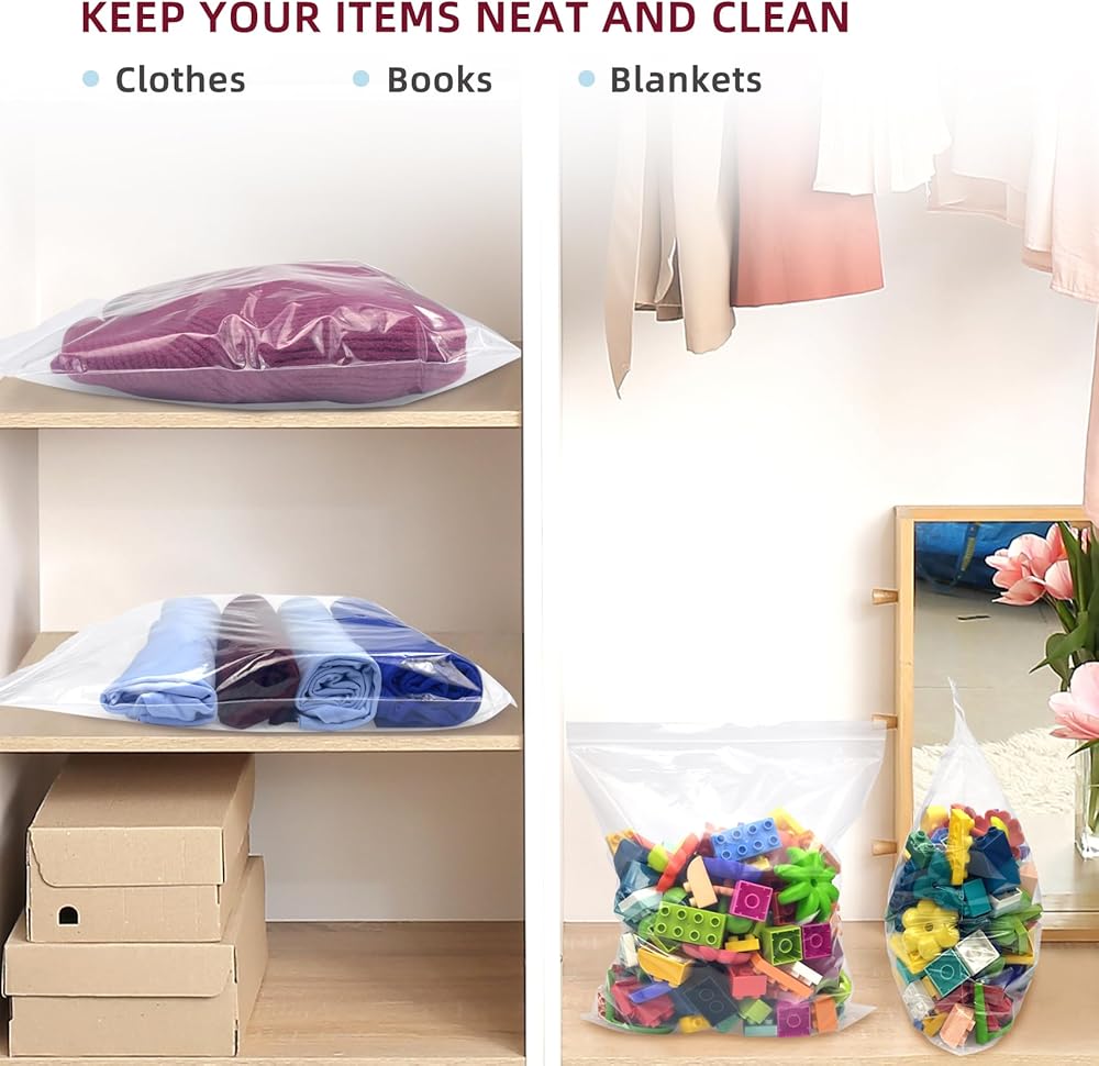 Space Saving Bags for Organization: The sturdy plastic storage bags are a suitable solution to keep linens, clothes, blankets, books, toys, and small appliances in the kitchen away from dust, making your seasonal cleaning quick and easy