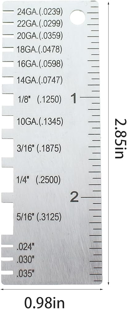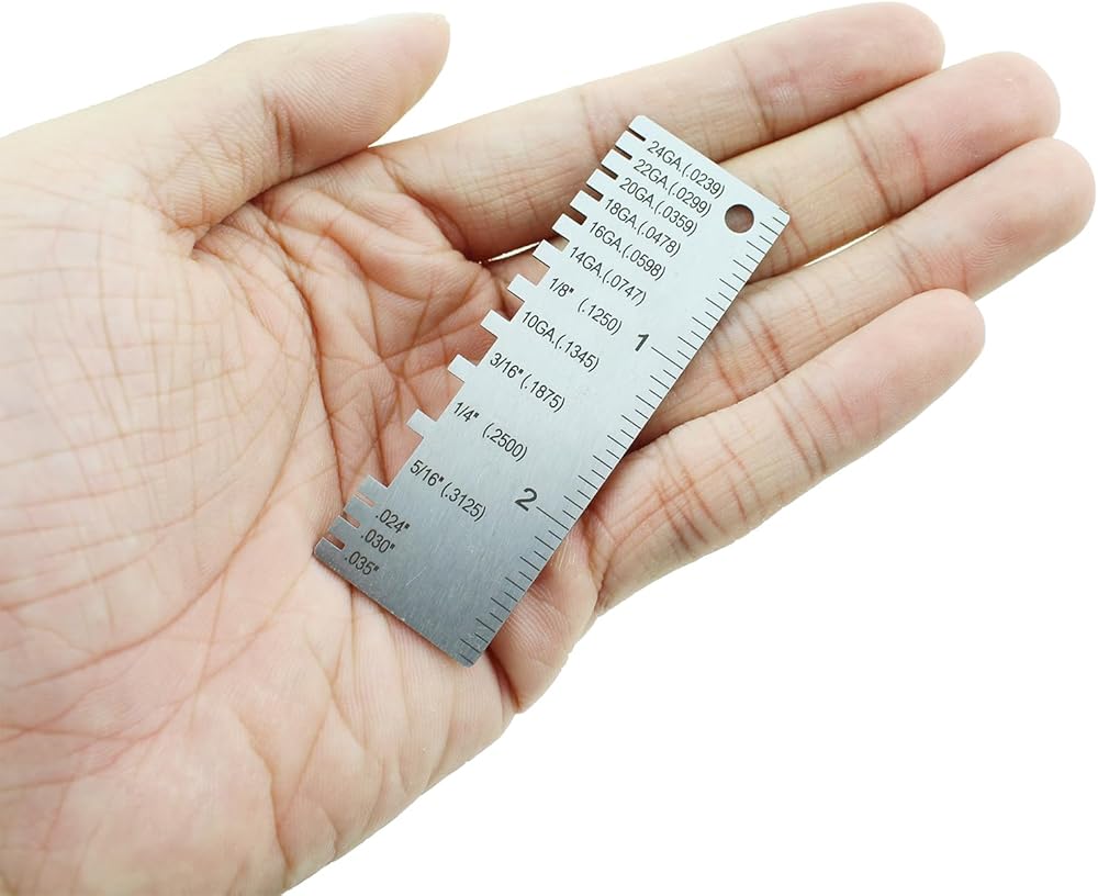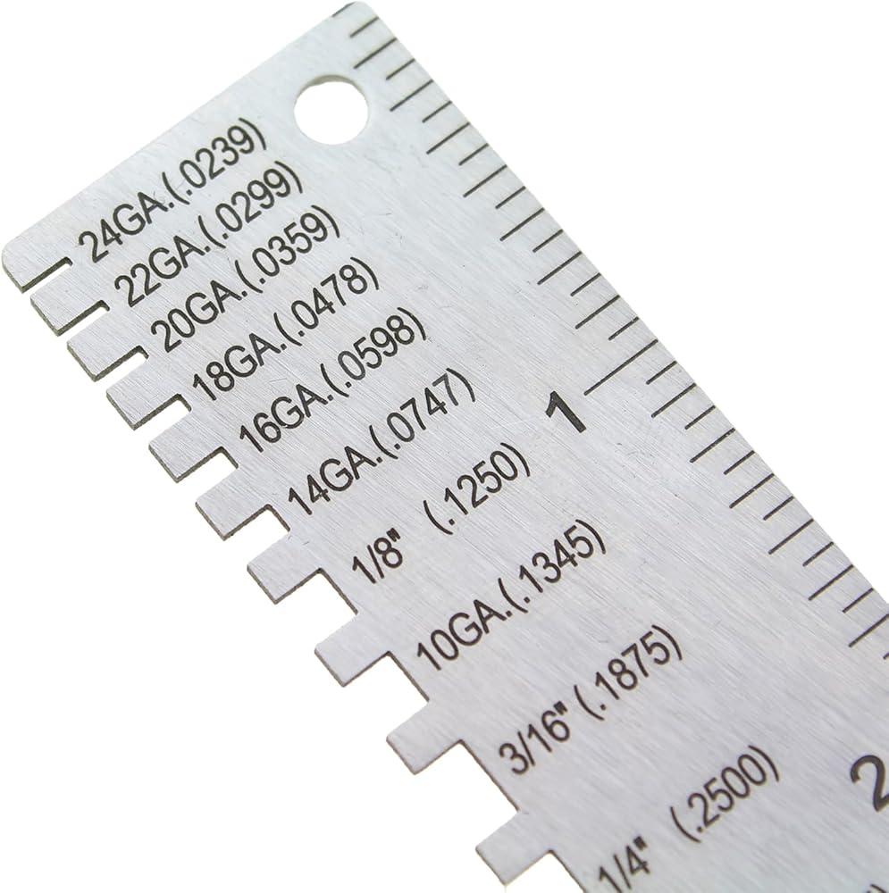 The metal ruler measures 7.2 x 2.5cm (2.83 x 1in), making it easy to carry. The metal thickness gauge has a measuring range (imperial) of 24GA (.0239) to (.035inch), and the clear scale makes it easy to read.
