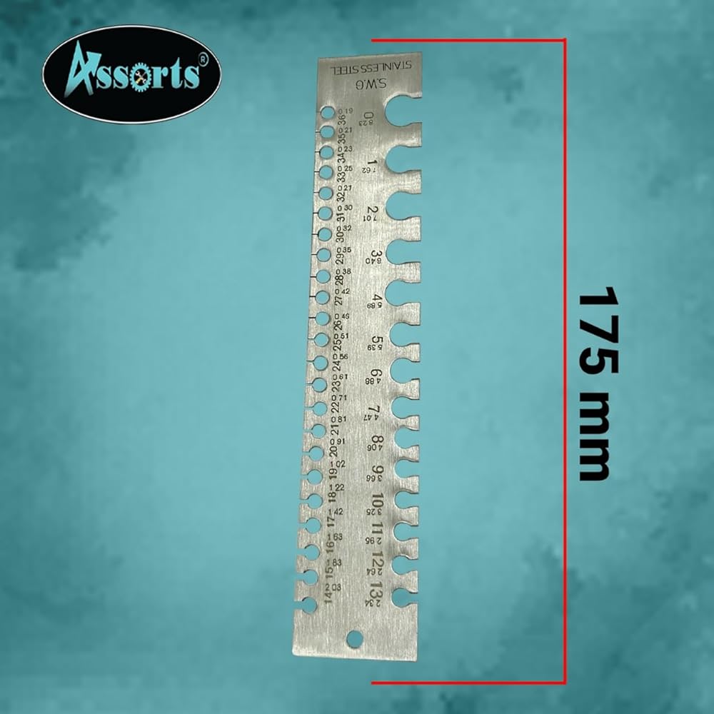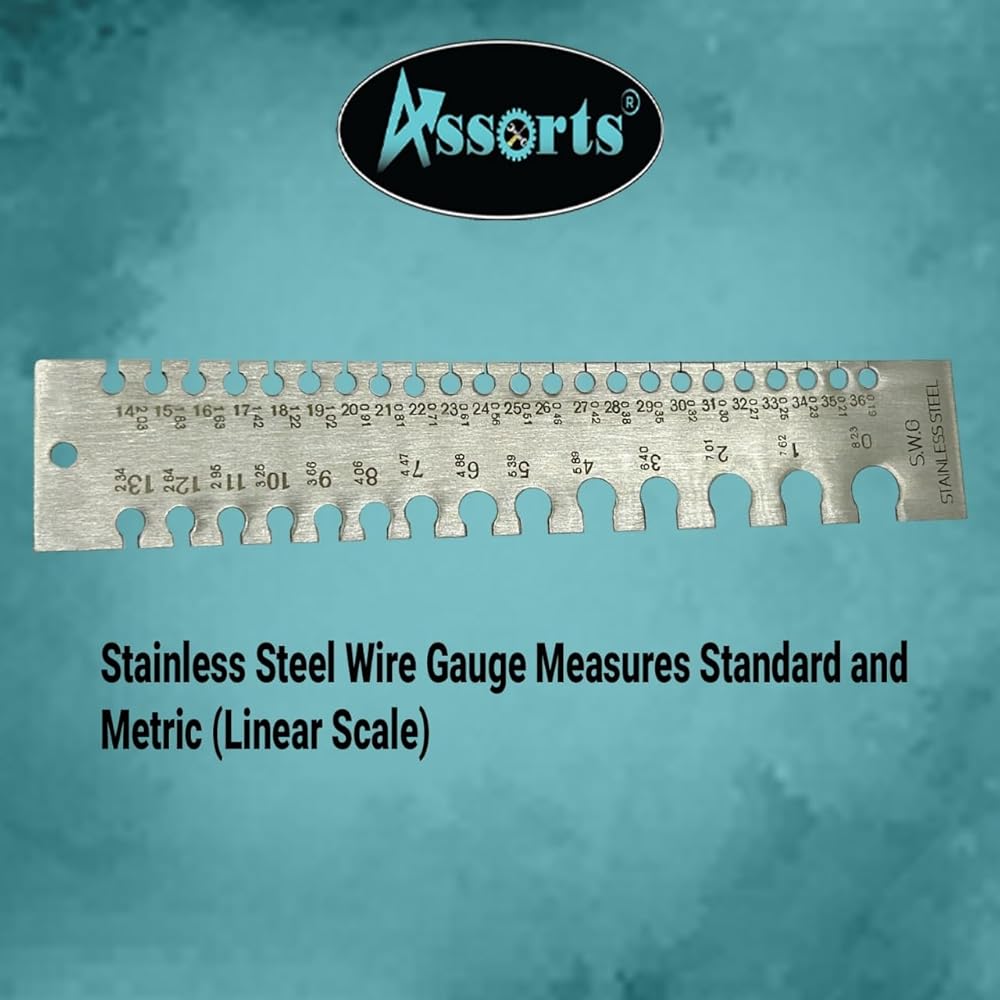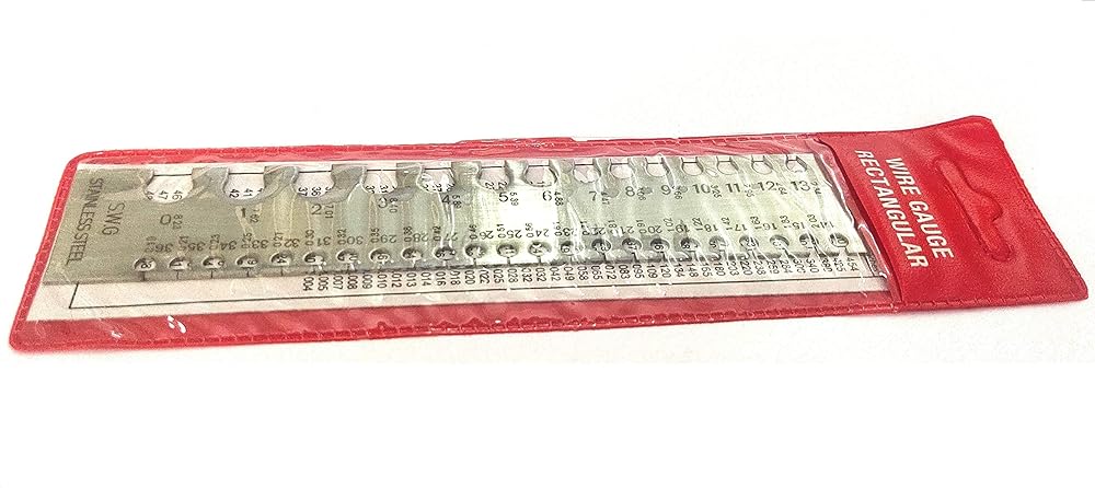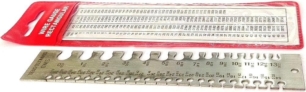 Popular gauge for iron wire, hot and cold rolled sheet steel. Made from bright finished and polished hardened stainless steel. Gauges have a convenient decimal equivalent of each number. Clear permanently etched graduations in USA Standard.