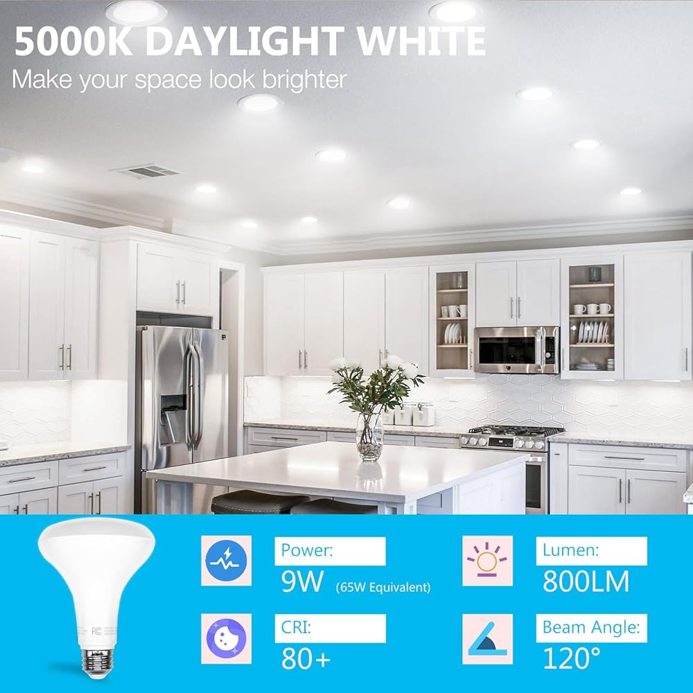 5000K BR30 LED Bulbs: DAYBETTER BR30 LED Bulbs are stable 5000K daylight glow,which adopt to upgraded LED technology and emit a full 800 lumens of brightness. These led bulbs could speread a larger area,creating a bright and energetic atmosphere. Please NOTE: Our 5000k is DAYLIGHT WHITE and NOT SOFT WHITE, which tends to be much whiter
