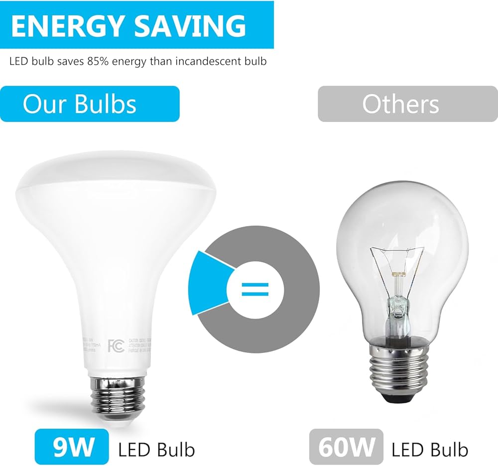 Energys Saving & Long Life Span: Different from traditional 60W incandescent bulbs,the 9W BR30 LED lights bulbs are 65W equivalent and change to energy-efficient lighting, which is not only reduce energy consumption but also Enjoy quality lighting while significantly lowering your electricity bills
