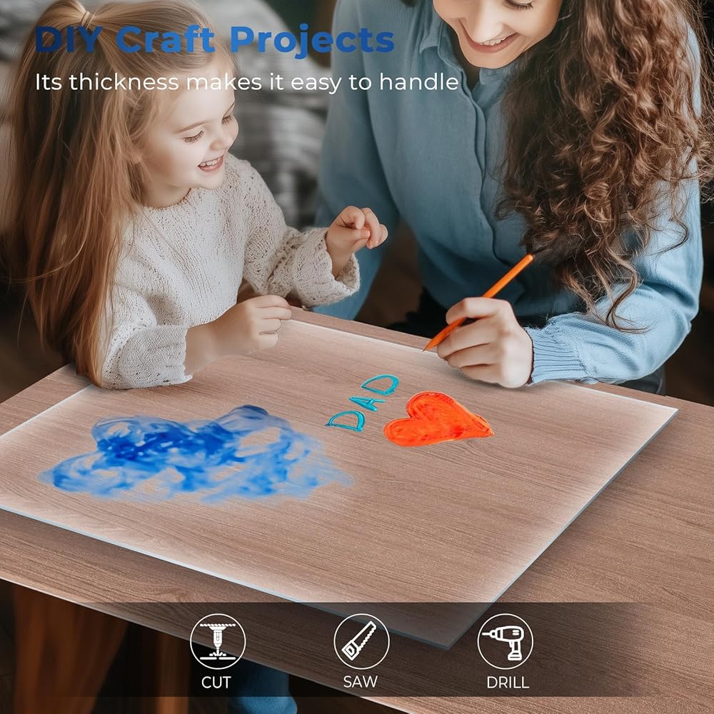 【Perfect replacement for glass】These cast acrylic sheets 1/8 thick are the ideal substitute, offering ultra-transparency like glass but being stronger, shatterproof, and half the weight, making them safer and more versatile