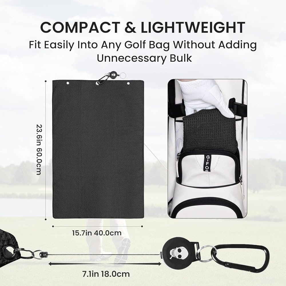Absorbent Microfiber Material: Crafted from lightweight and highly absorbent microfiber with a waffle pattern design, this towel is perfect for keeping your clubs and equipment clean and dry.