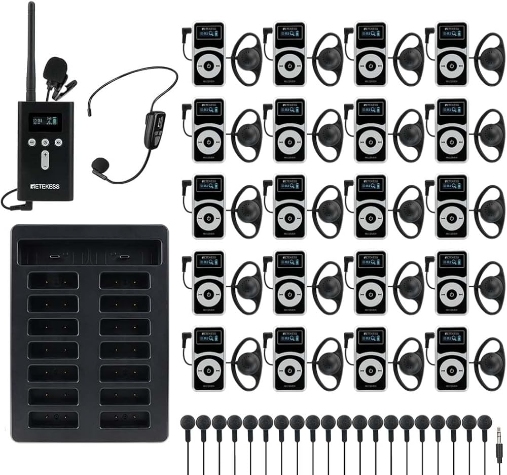 Retekess T130P (3nd Gen T130) Factory Tour Guide System Voice Audio Transmission,Upgraded Noise Reduction,Tour Guide Microphone,160m/525ft,Walking Tour Headsets for Tour Groups (1TX 20 RX)