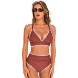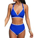 Design: The Charming Stitching Design Bikini Sets with Deep V Neck and Crisscross Back Self Tie Making A Statement; The Two Piece Swimsuit with Ruched High Waisted Full Coverage Bottom Detail Give You Comfortable Fitting