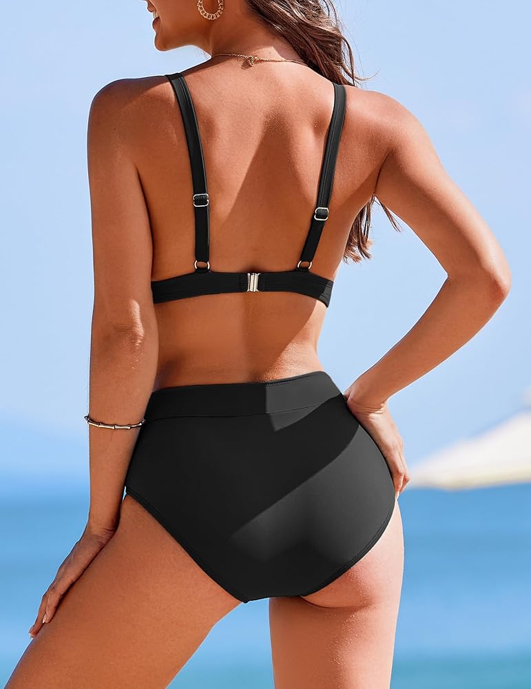 Design: These AI'MAGE bathing suits stand out whith trendy color block design. The bikini tops have a sexy V neck and adjustable shoulder traps. With the design, it provides both support and cleavage enhancement. Besides, the bikini bottoms have a splicing and high waisted design. It hides your tummy and makes you look slimmer.