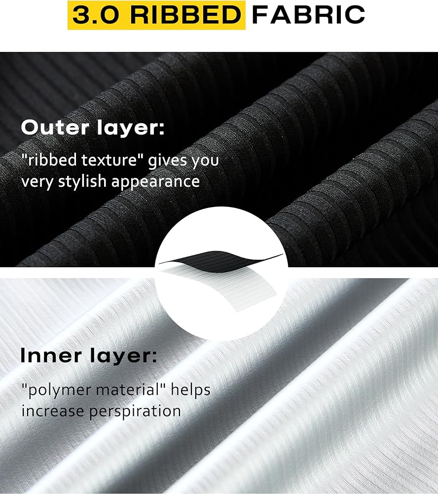 Stylish Sauna Suit: Ribbed sweat sauna suit, not only makes you sweat more but also give you very stylish appearance. Ribbed sweat fabric can prevent external moisture from entering and allow internal sweat to evaporate, also make it more easier to take off after workout