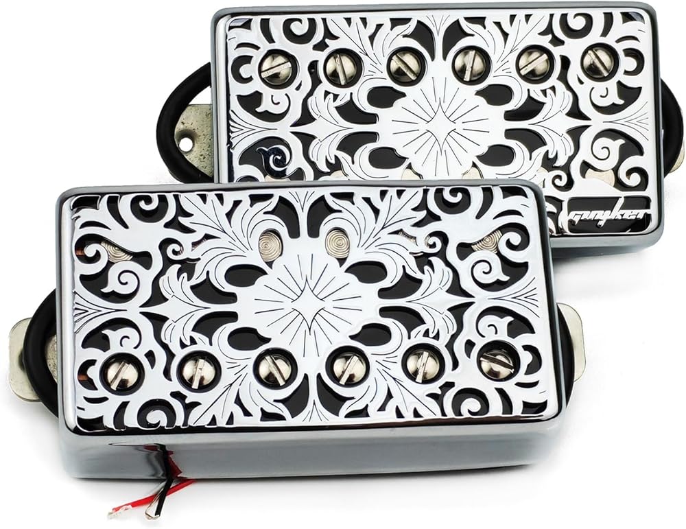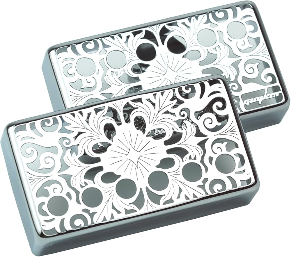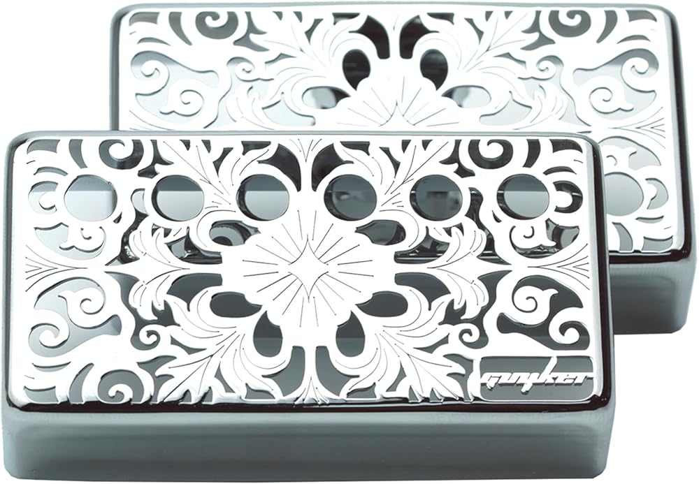 Guyker Humbucker Pickup Cover (1Pcs 50mm and 1Pcs 52mm Pole Spacing), Cupronickel Bridge & Neck Kaleidoscope Pattern Hollow Pickups Frame for Les Paul LP Style Electric Guitar (PC010, Chrome)