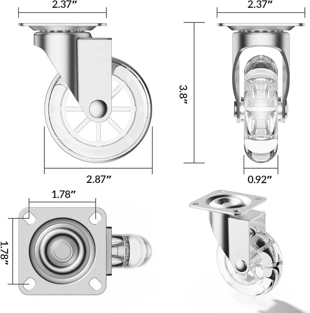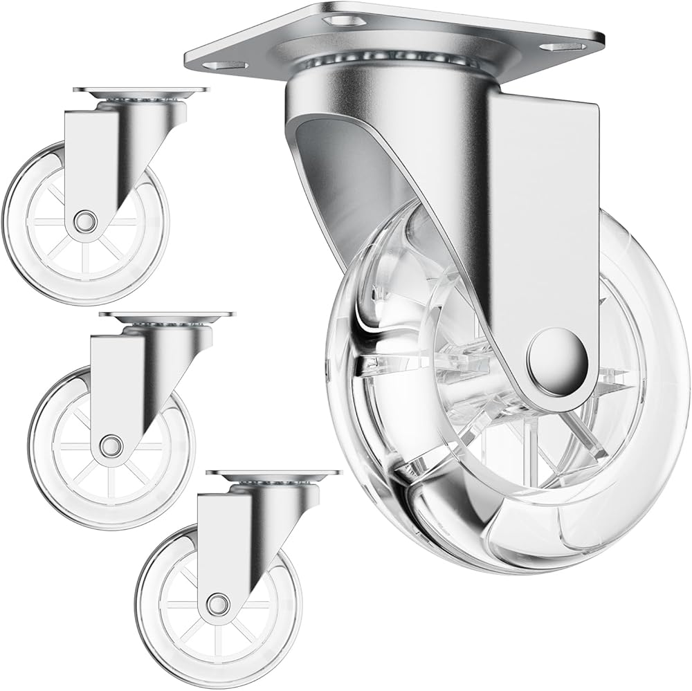 High-Quality Material: Made from durable clear polyurethane, these 2 inch caster wheels are hard-wearing and easy to clean, and are suitable for a wide range of floors (wood, tile, carpet, etc.).
