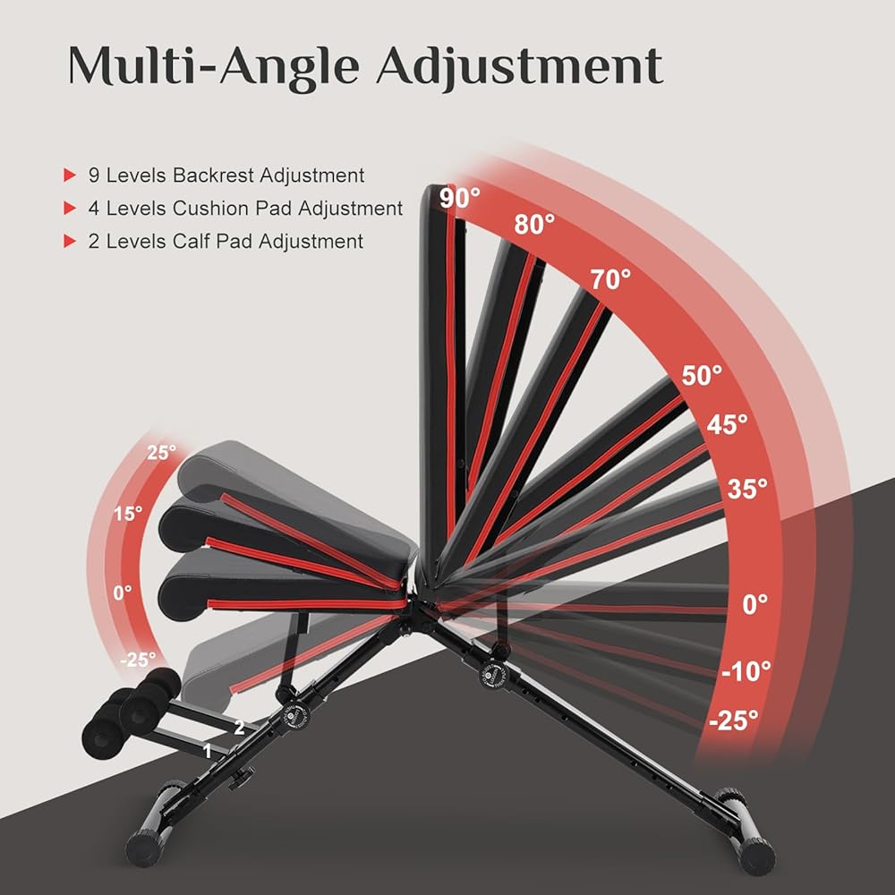 Adjustable weight bench: Elevate your fitness journey with the OLIXIS weight bench for home gym, boasting 9 back adjustments, 4 seat and 10 leg adjustments. This versatile adjustable weight bench can be configured as an incline, decline or flat bench, catering to exercises targeting all major muscle groups such as the chest, back, shoulders, legs and abdominals.